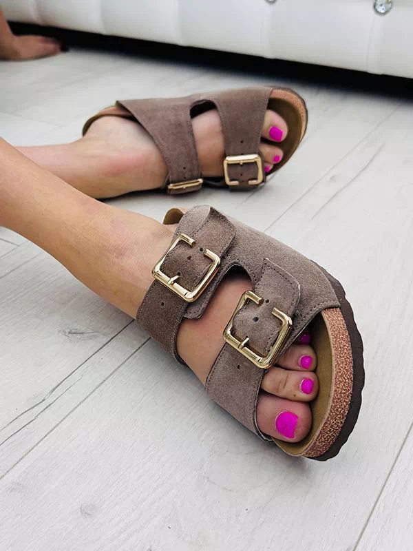 Шльопанці бежевого відтінку з натуральної замші