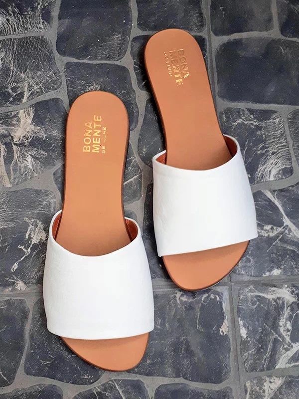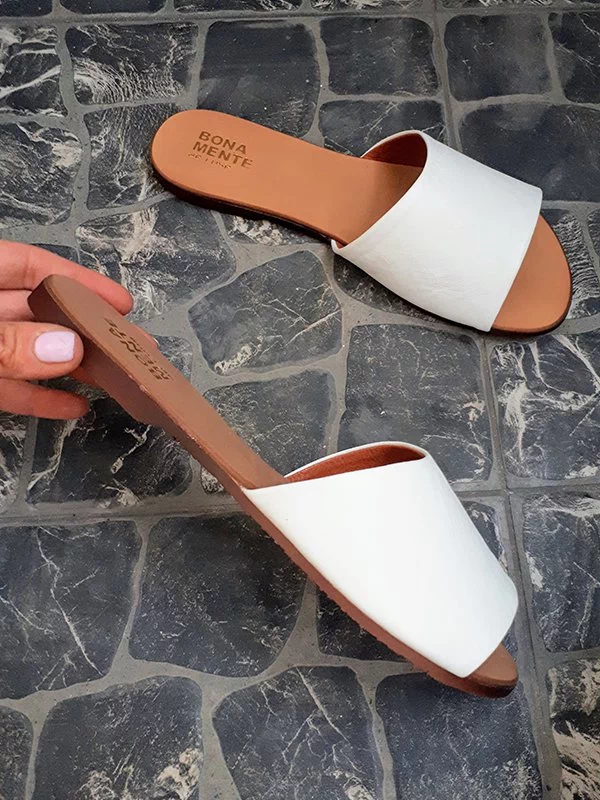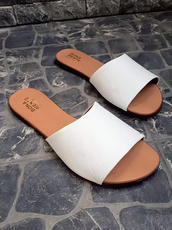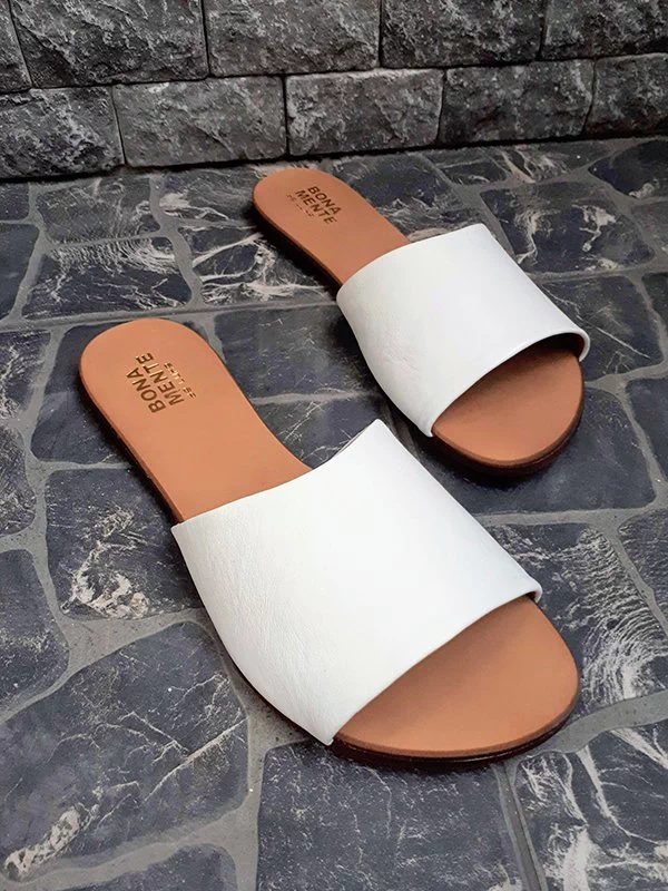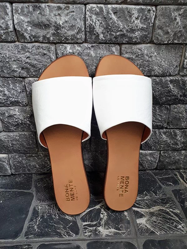 Шкіряні шльопанці білого кольору на тонкій підошві