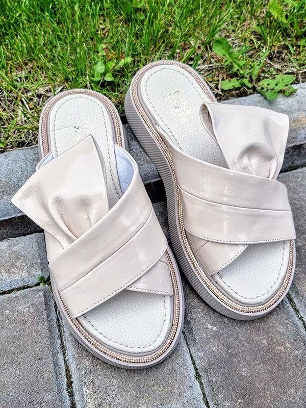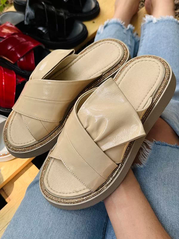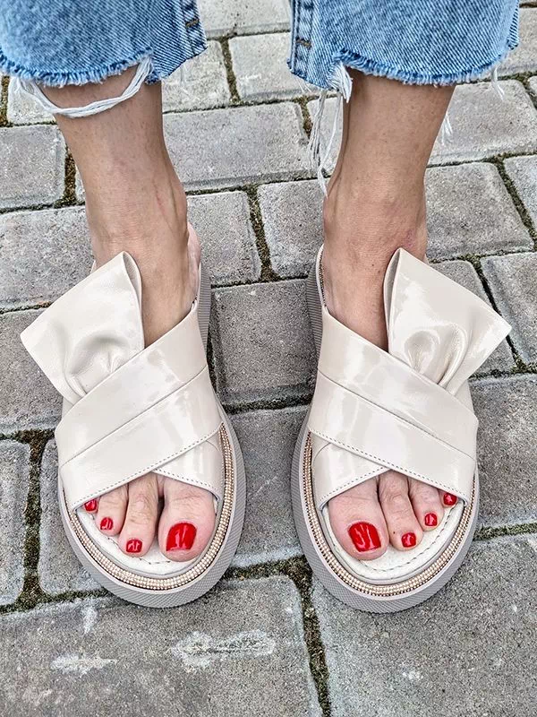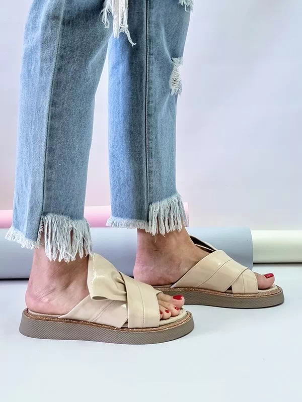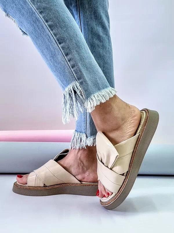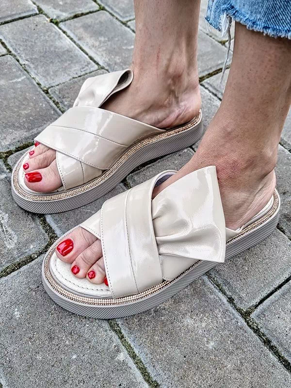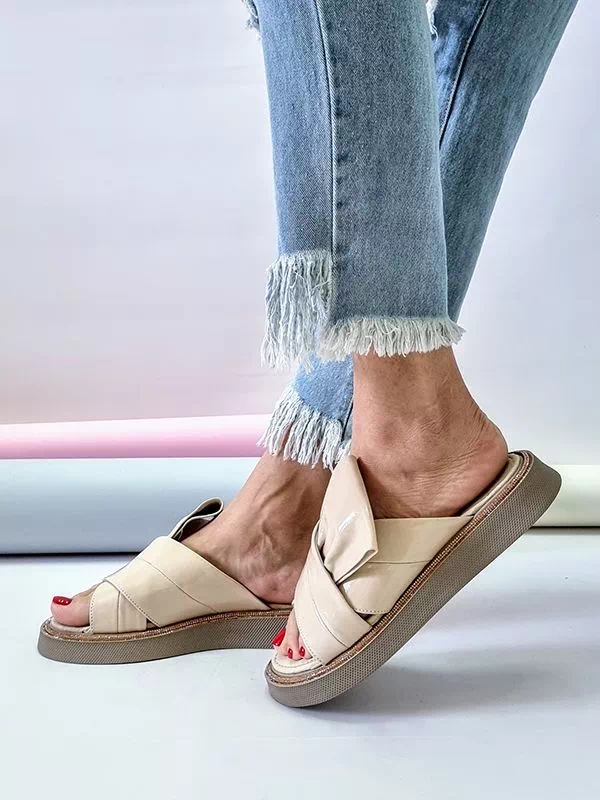 Шикарні жіночі шльопанці бежевого кольору на будь-які випадки життя.