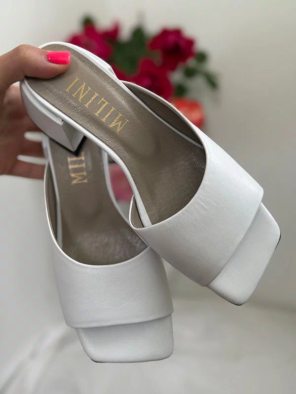Потужні жіночі мюлі у білому виконанні на всі випадки життя.