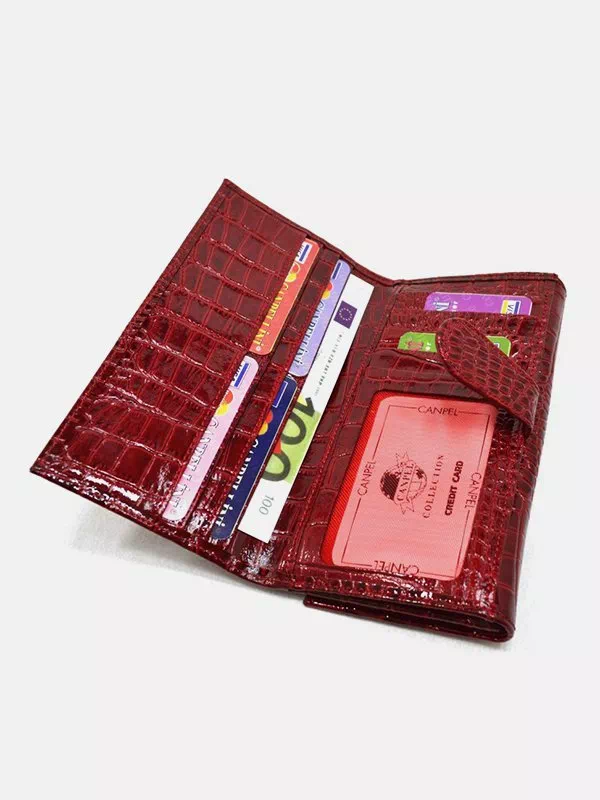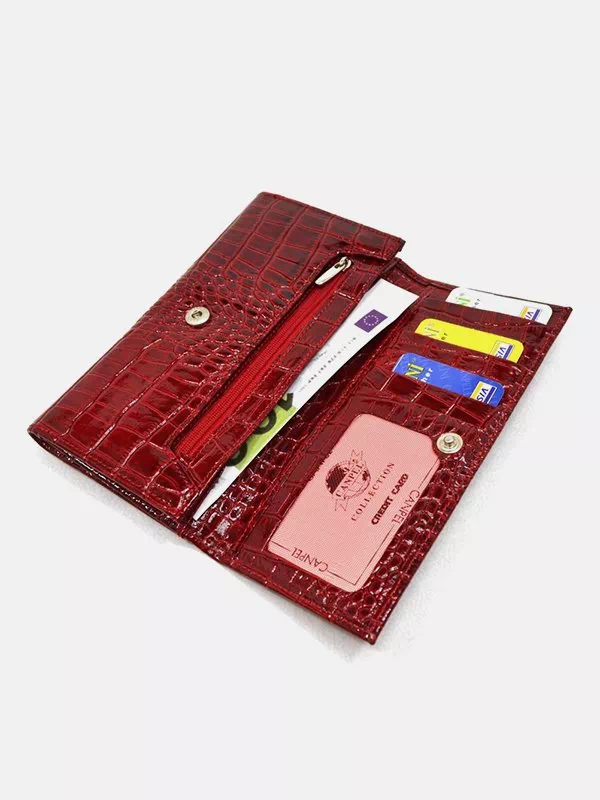 Жіночий гаманець C-5718 – ідеальний вибір для використання з будь-яким стилем. Виготовлений з червної фактурної лакованої шкіри «під крокодила». Аксесуар невибагливий за доглядом, має яскравий зовнішній вигляд, якісний пошив, користується великим попитом на українському ринку. Данний жіночий гаманець вдало підкреслить практично будь-який образ. Чудовий варіант в якості подарунку для будь-якої жінки. Країна виробник – Туреччина.