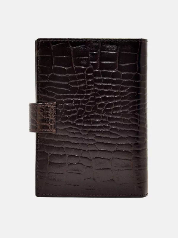 Черный вертикальный кошелек из натуральной кожи «под рептилию»