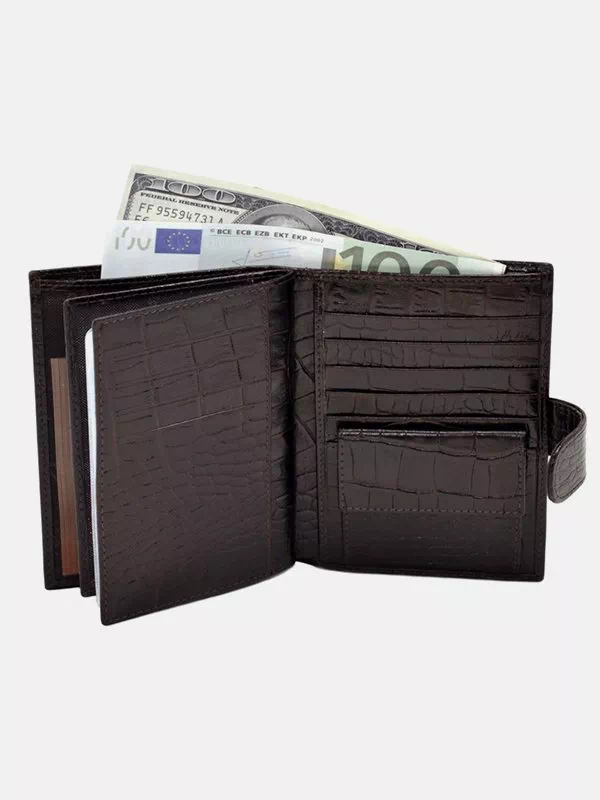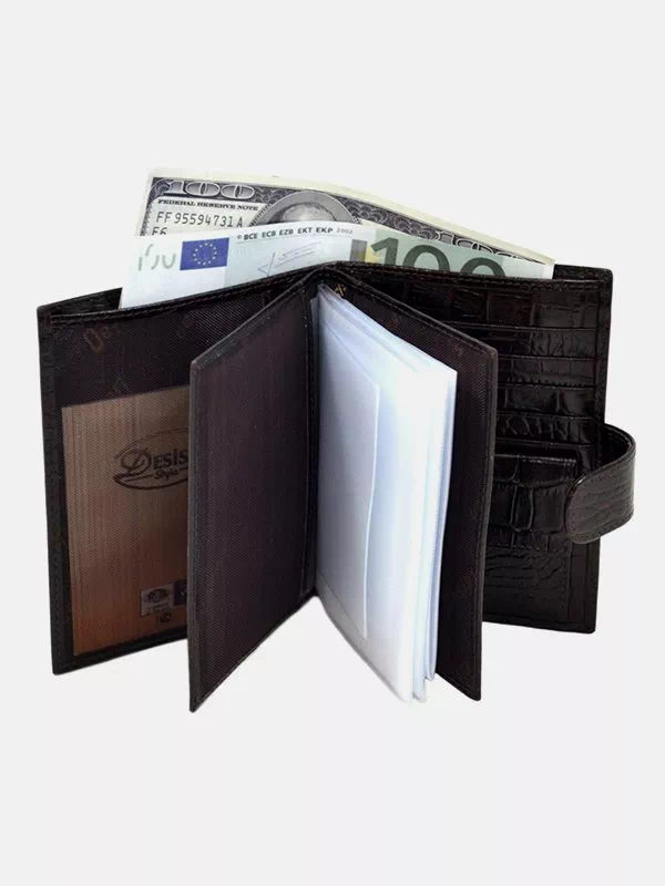 Мужское портмоне D-7219 — прекрасный выбор в сочетании с любым стилем. Изготовлено из фактурной натуральной кожи «под крокодила» в коричневом исполнении. Аксессуар неприхотлив в уходе, имеет изящный внешний вид, качественный пошив, пользуется большим спросом на украинском рынке. Данный мужской кошелек удачно подчеркнет ваш стиль. Великолепный вариант в качестве подарка для любого мужчины. Страна производитель – Турция.