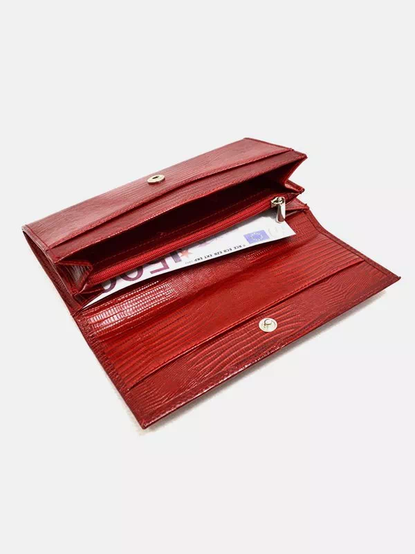 Женский кошелек C-3015 – правильный выбор для использования с любым стилем. Изготовлен из красной фактурной лаковой кожи «под рептилию». Аксессуар неприхотлив в уходе, имеет эффектный внешний вид, качественный пошив, пользуется повышенным вниманием на украинском рынке. Данный женский кошелек добавит элегантности практически любому образу. Отличный вариант в качестве подарка для любой женщины. Страна производитель – Турция.