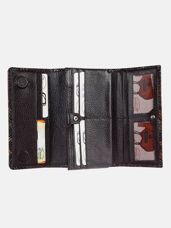 Женский кошелёк D-586 — грамотное решение в сочетании с любым стилем. Изготовлен из коричневой фактурной натуральной кожи с наружным лаковым напылением. Аксессуар неприхотлив в уходе, имеет аккуратный вид, качественный пошив, снаружи украшен узором, пользуется значительным вниманием на украинском рынке. Выгодно дополнит практически любой образ. Прекрасный вариант в качестве подарка для любой женщины. Страна производитель – Турция.