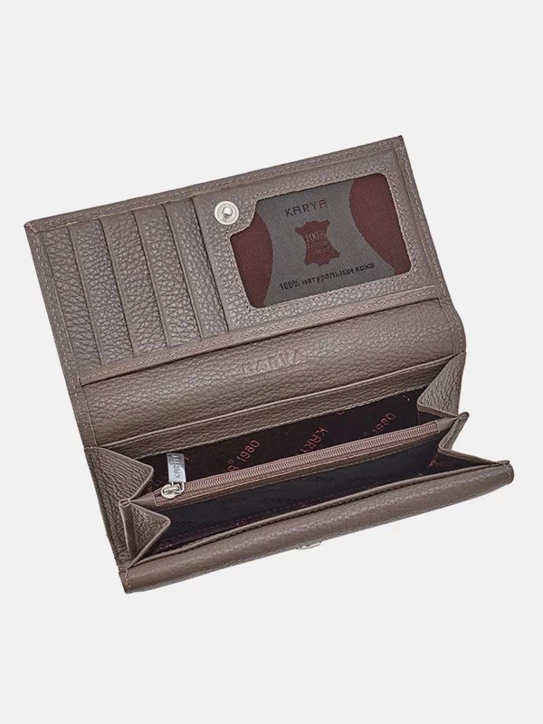 Женский кошелёк K-1451 — прекрасное решение для использования с любым стилем. Изготовлен из фактурной натуральной кожи флотар бежевого цвета. Аксессуар неприхотлив в уходе, имеет аккуратный внешний вид, качественный пошив, пользуется значительным спросом на украинском рынке. Удачно подчеркнёт практически любой образ. Отличный вариант на подарок любой женщине. Страна производитель – Турция.