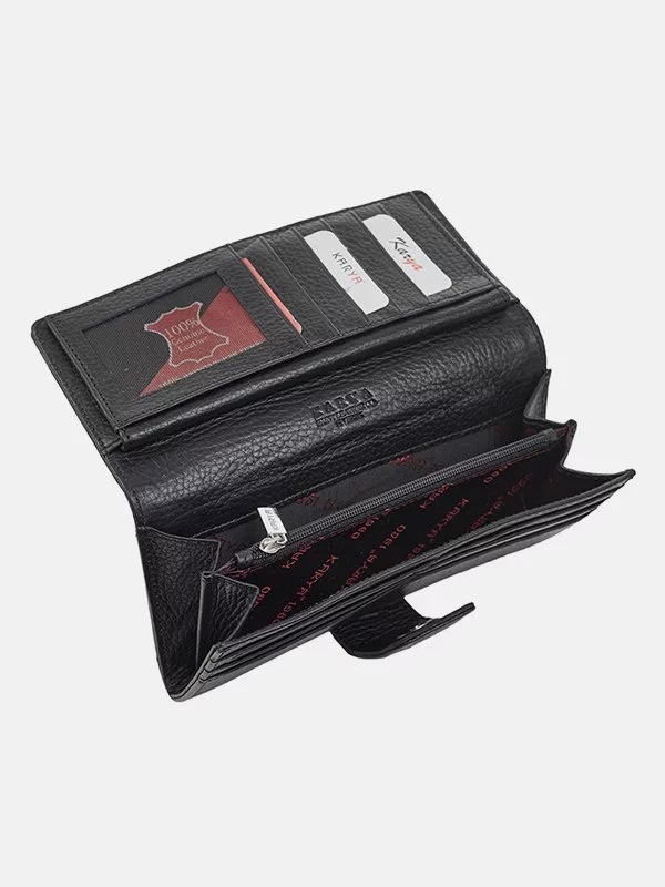 Женский кошелёк K-8445 — грамотный вариант в сочетании с любым стилем. Изготовлен из фактурной натуральной кожи флотар чёрного цвета. Аксессуар неприхотлив в уходе, имеет аккуратный внешний вид, качественный пошив, пользуется большой популярностью на украинском рынке. Добавит элегантности практически любому образу. Великолепный выбор в качестве подарка для любой женщины. Страна производитель – Турция.