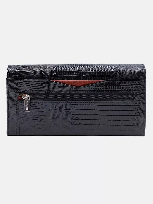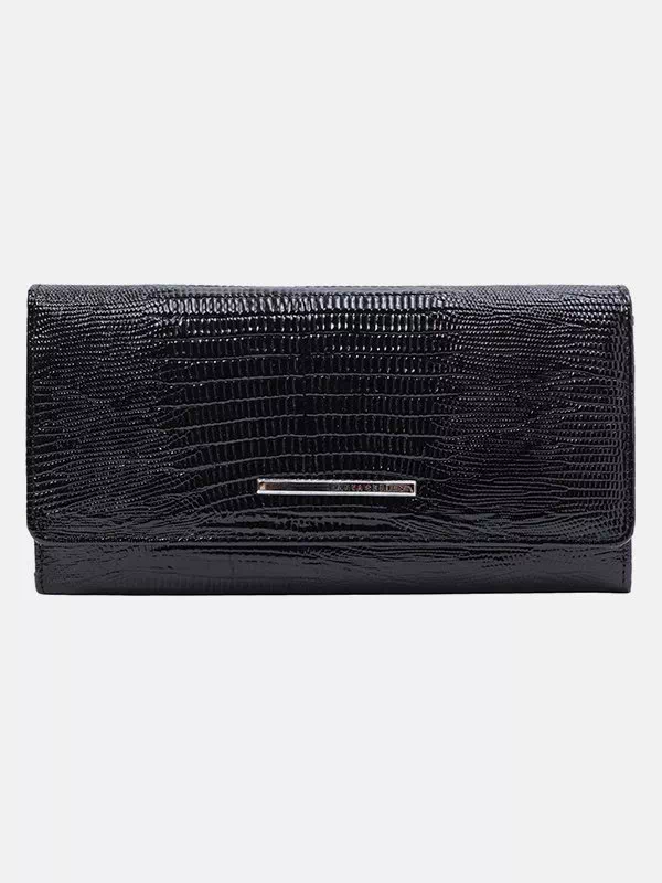 Женский кошелек K-9507 – разумный вариант для использования с любым стилем. Изготовлен из фактурной натуральной кожи «под рептилию» с лаковым напылением в черном исполнении. Аксессуар неприхотлив в уходе, имеет эффектный внешний вид, качественный пошив, пользуется повышенным вниманием на украинском рынке. Данный женский кошелек добавит элегантности практически любому образу. Прекрасное решение в качестве подарка для любой женщины. Страна производитель – Турция.
