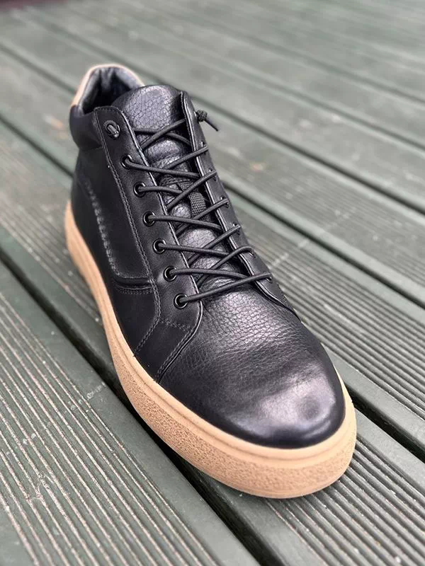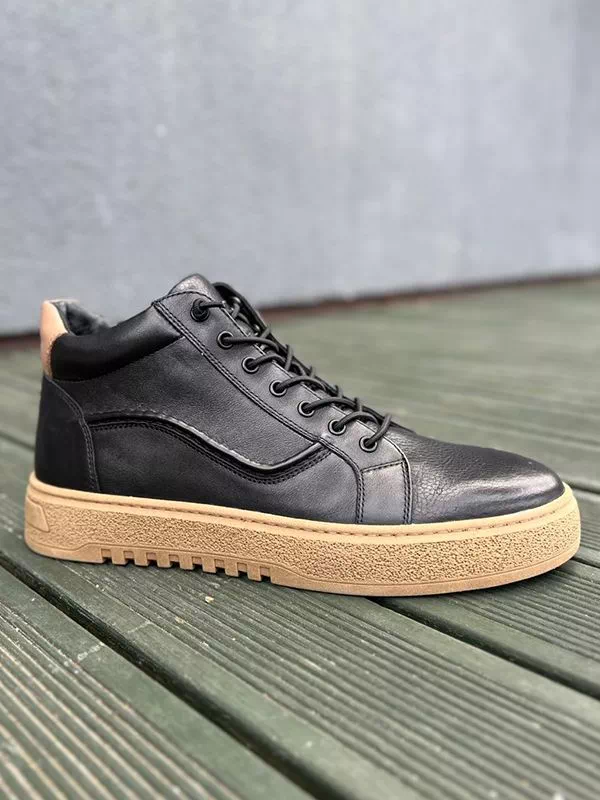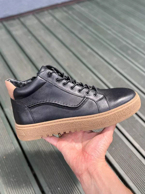 Великолепные зимние мужские полуботинки в бежево-черном исполнении на все случаи жизни.