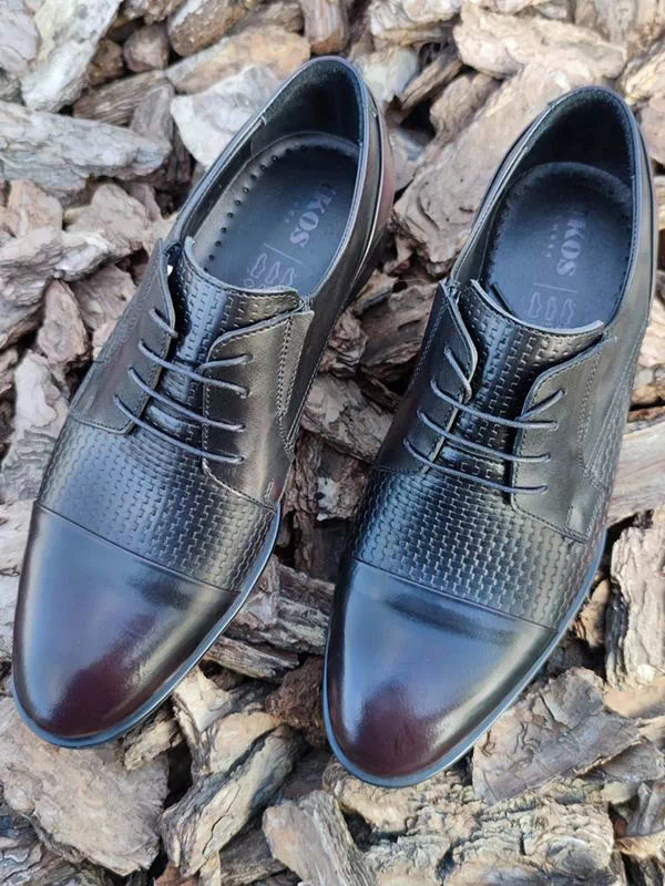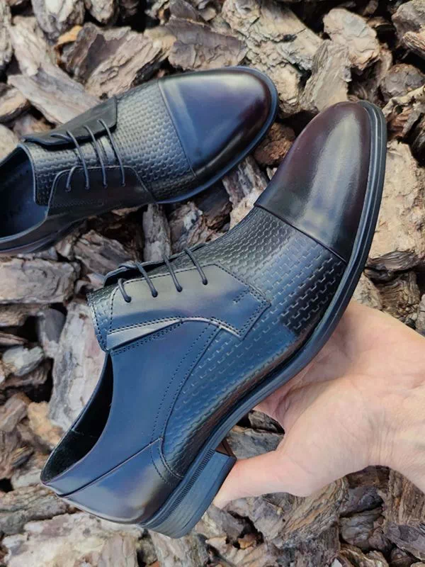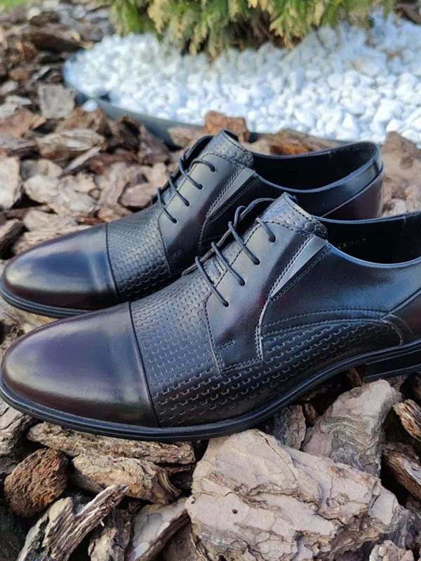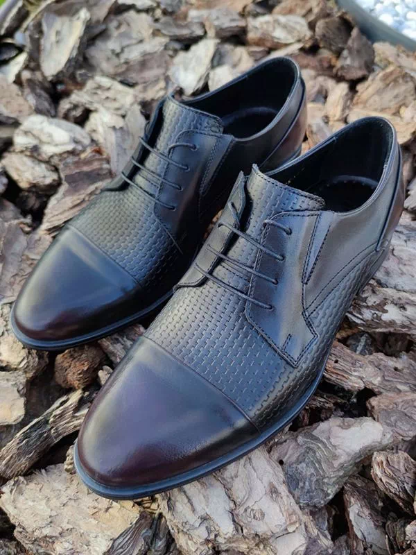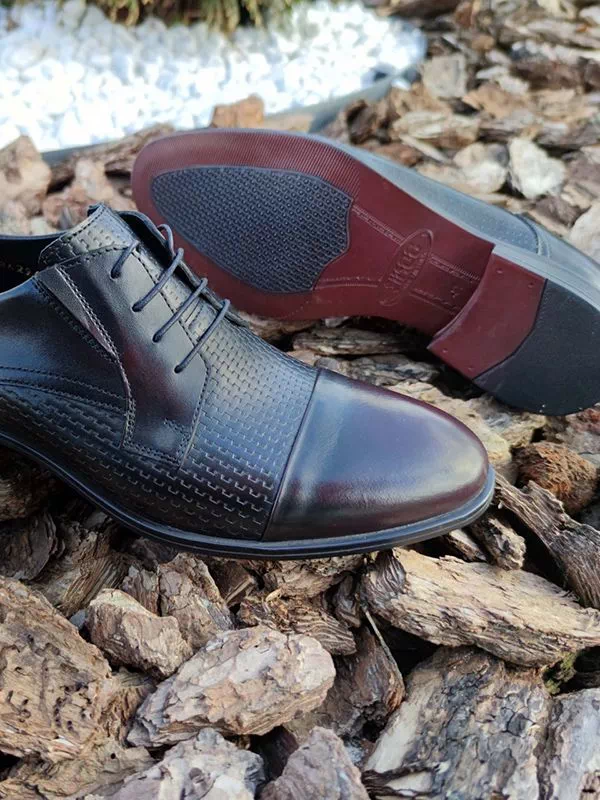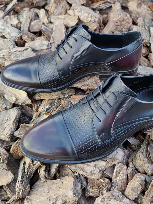 Черно-бордовые кожаные дерби с узором и отрезным мыском