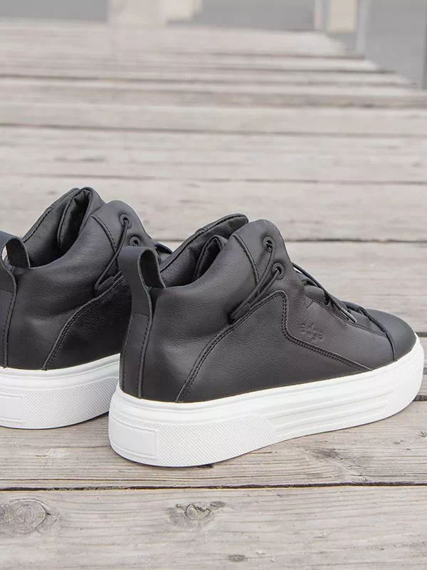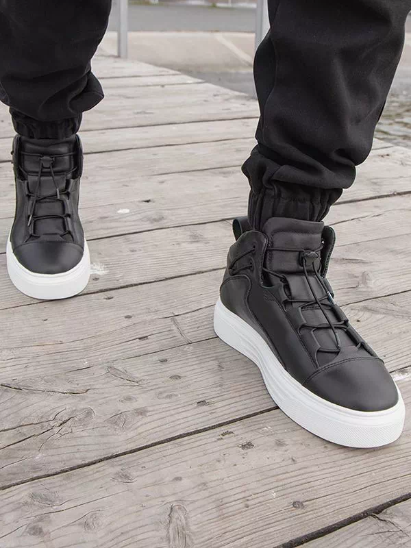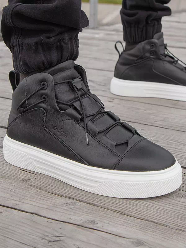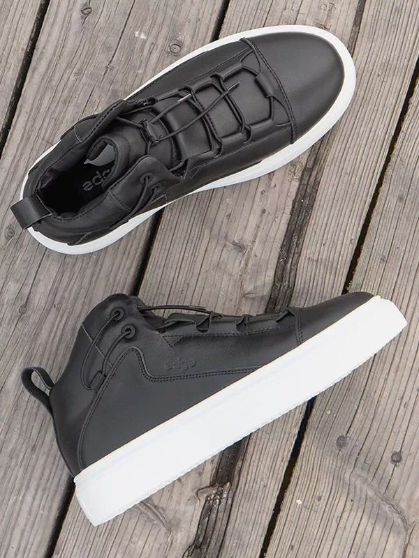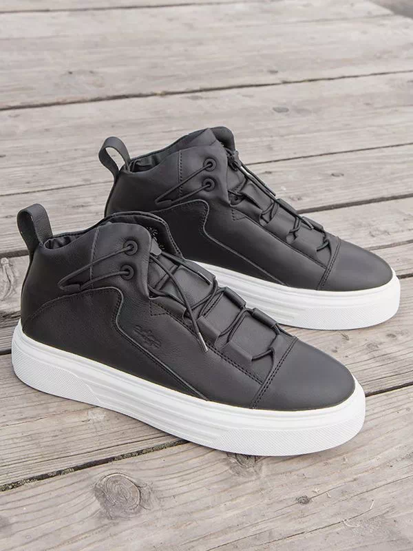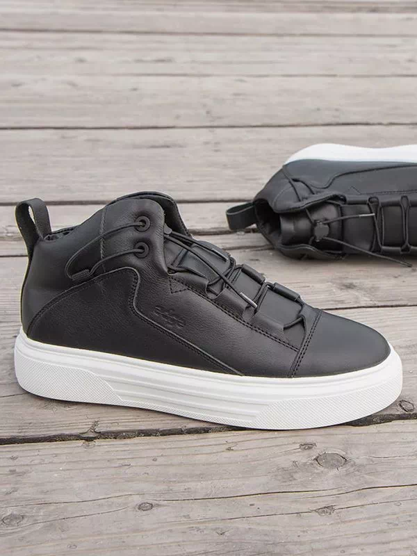 Черно-белые кожаные зимние хайтопы с тянущейся шнуровкой