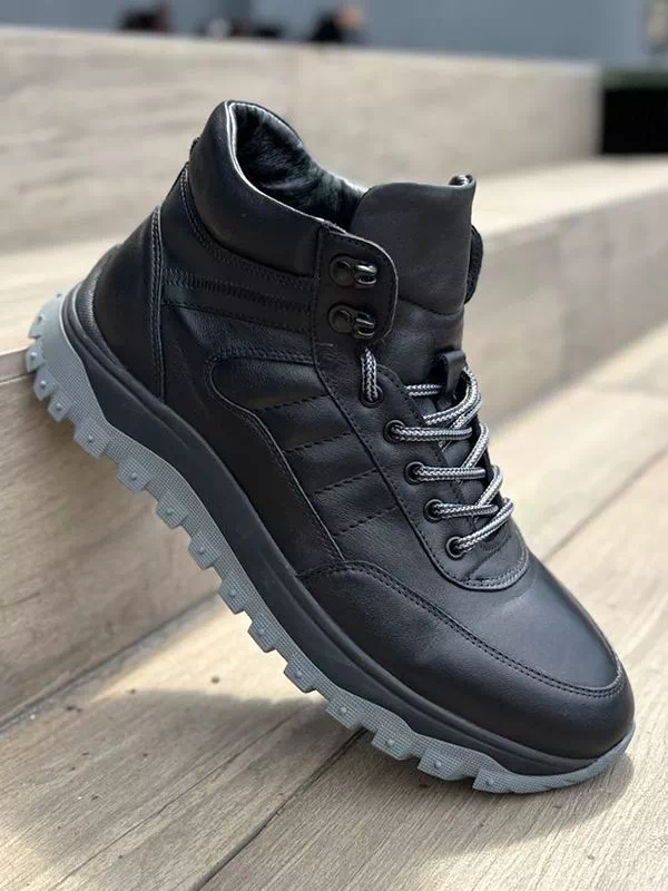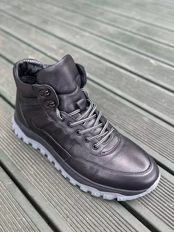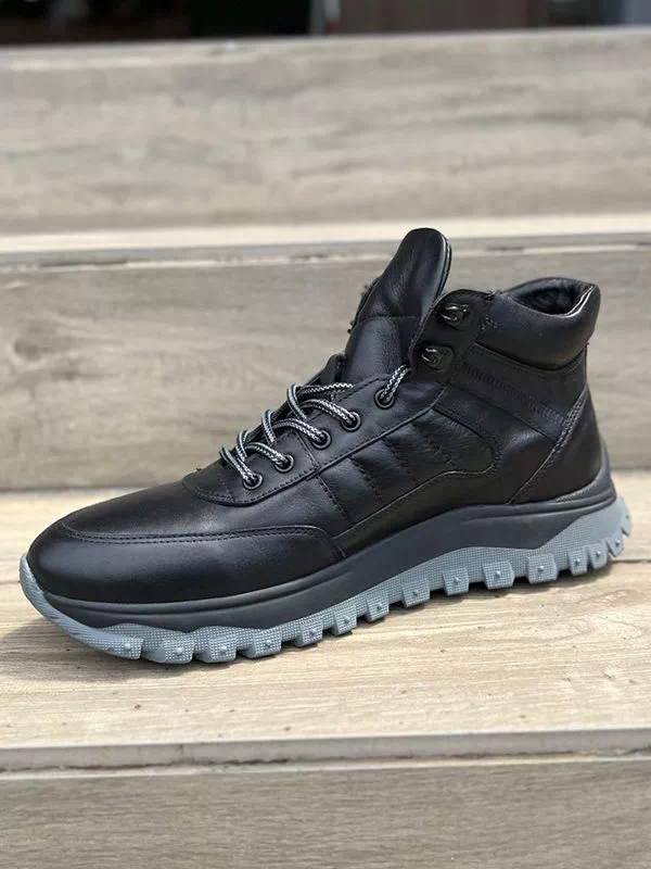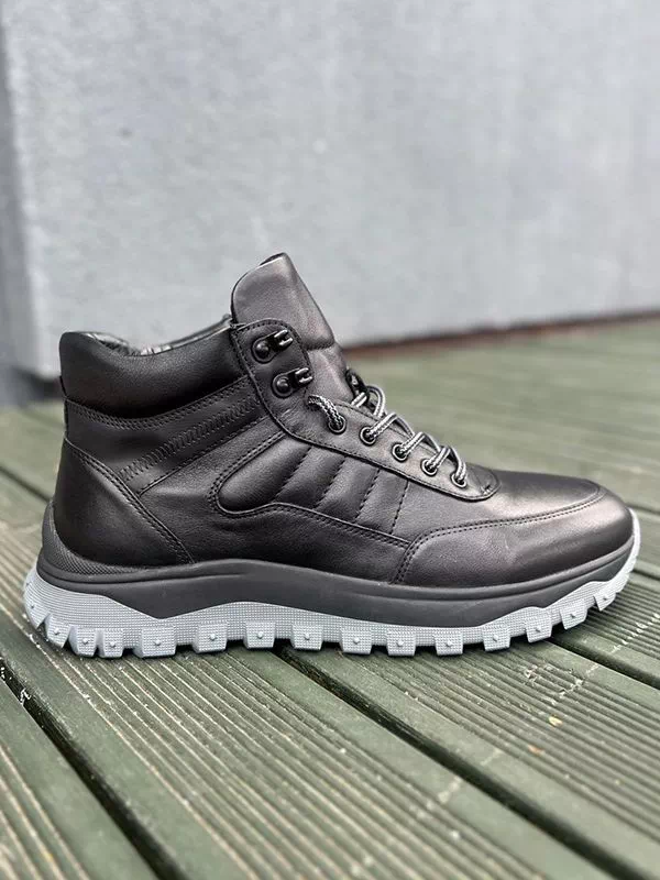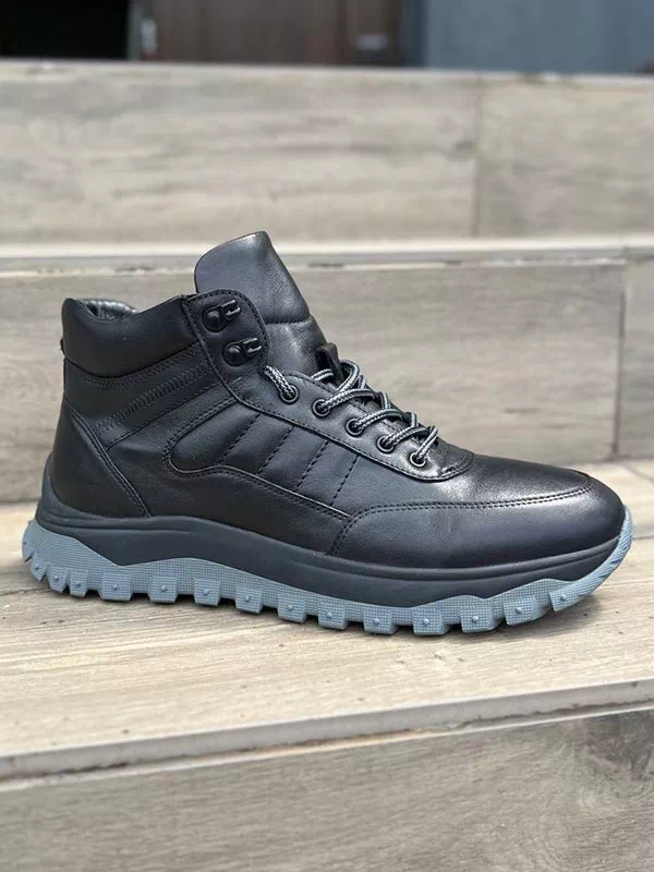 Привлекательные зимние мужские хайтопы серо-черного цвета на любые случаи жизни.