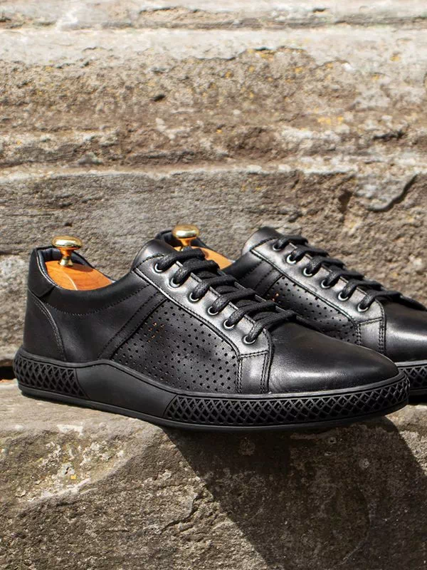 Кожаные черные летние кеды турецкого производства