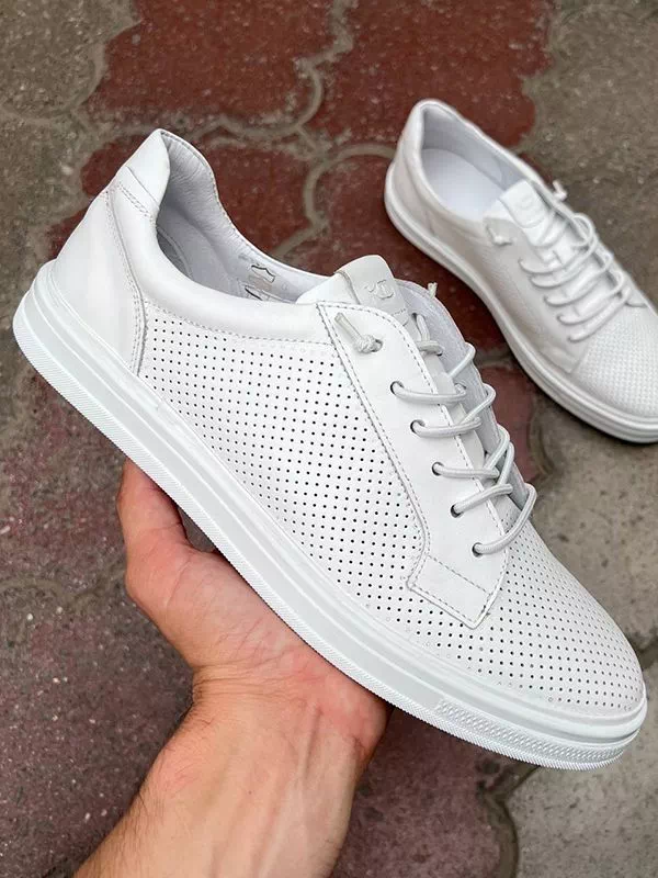 Привлекательные мужские кеды в белом исполнении на все случаи жизни.
