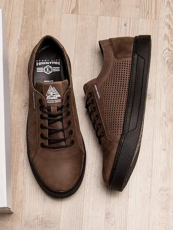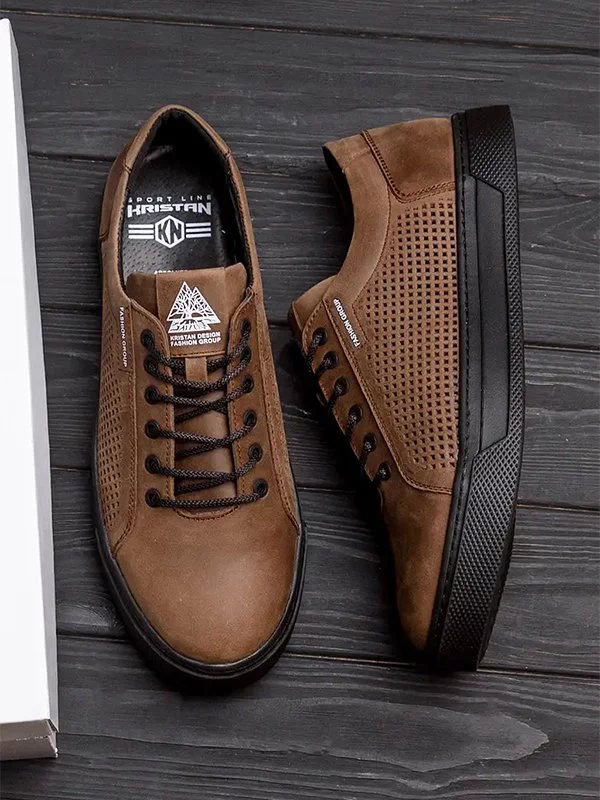 Коричневые нубуковые летние кеды со сквозной перфорацией