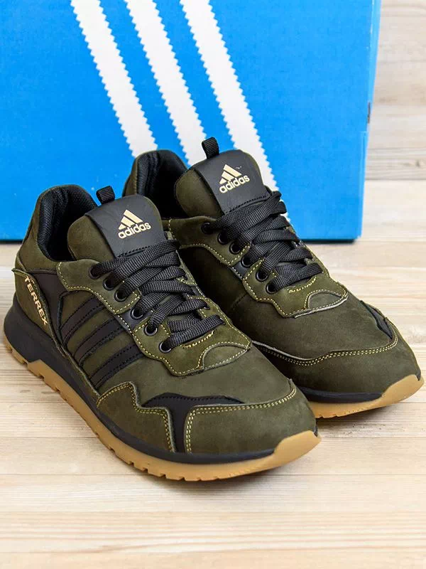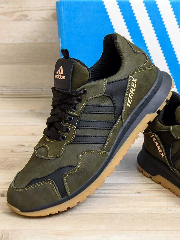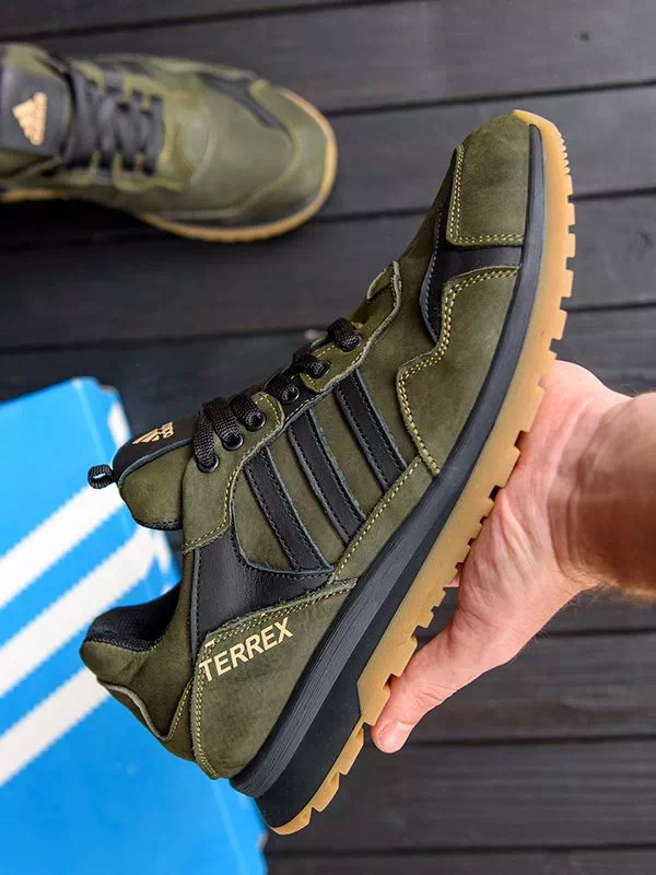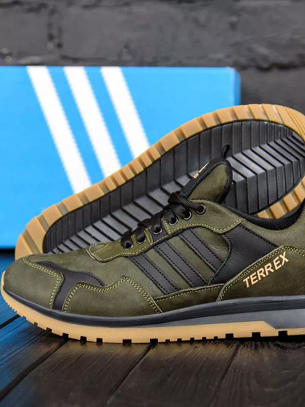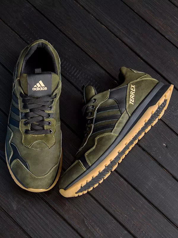 Мощные мужские кроссовки черно-оливкового цвета на любые случаи жизни.