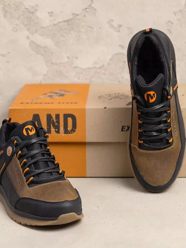 Интересные мужские кроссовки черно-бежевого цвета на любые случаи жизни.