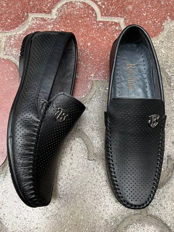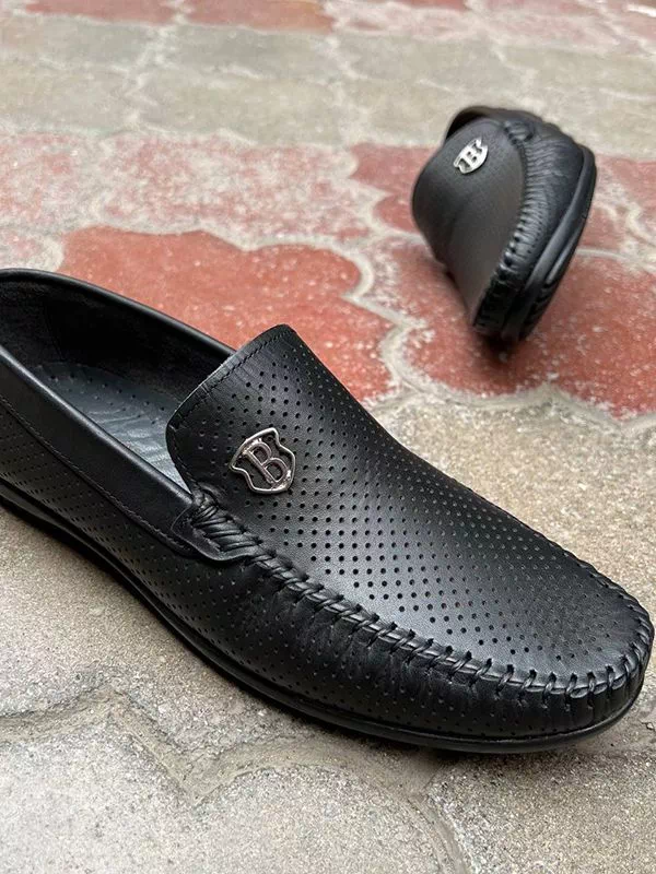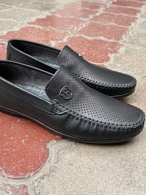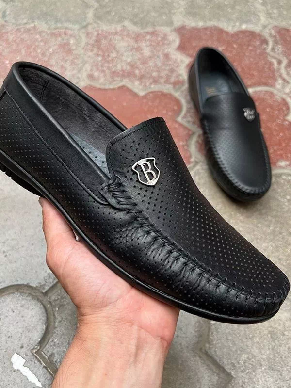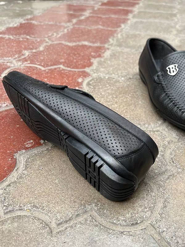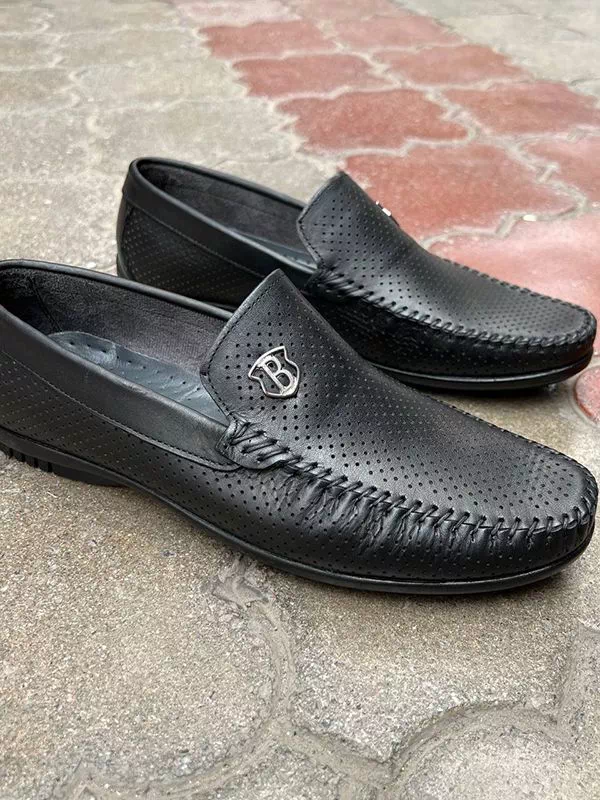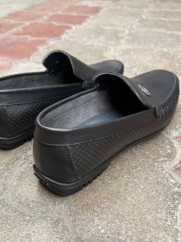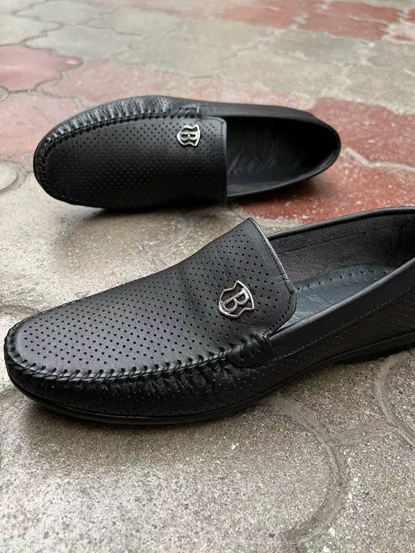 Черные летние кожаные мокасины турецкого производства