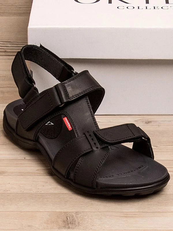 Сандалии на липучках из черной натуральной кожи