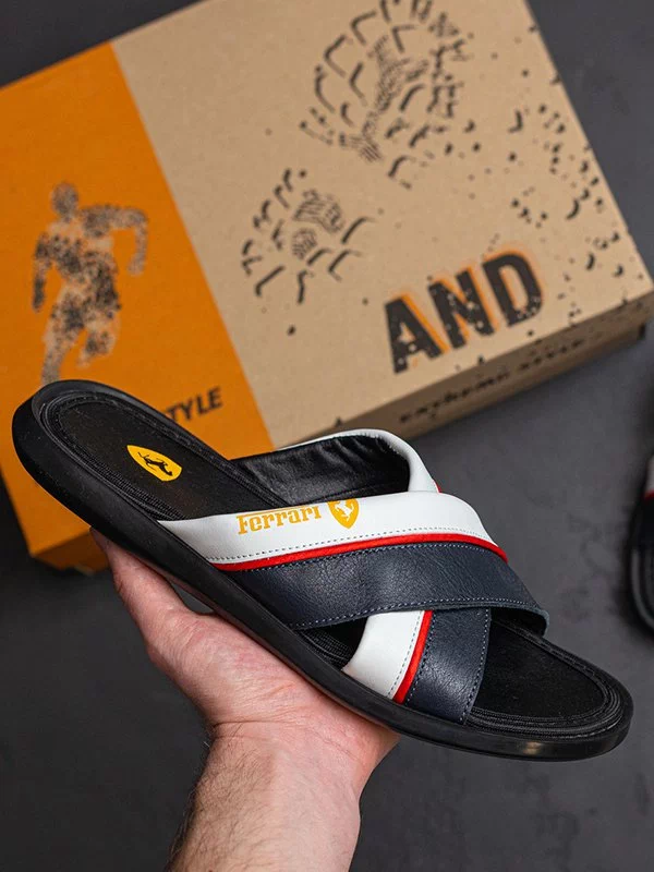 Кожаные шлёпанцы в коричнево-синем исполнении