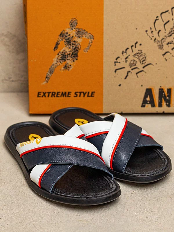 Интересные мужские шлёпанцы в сине-белом исполнении на все случаи жизни.