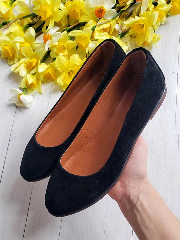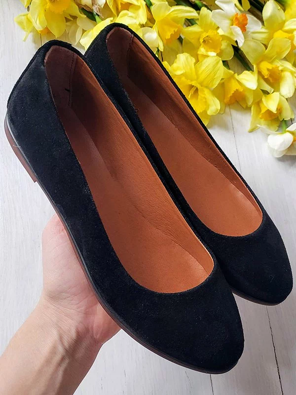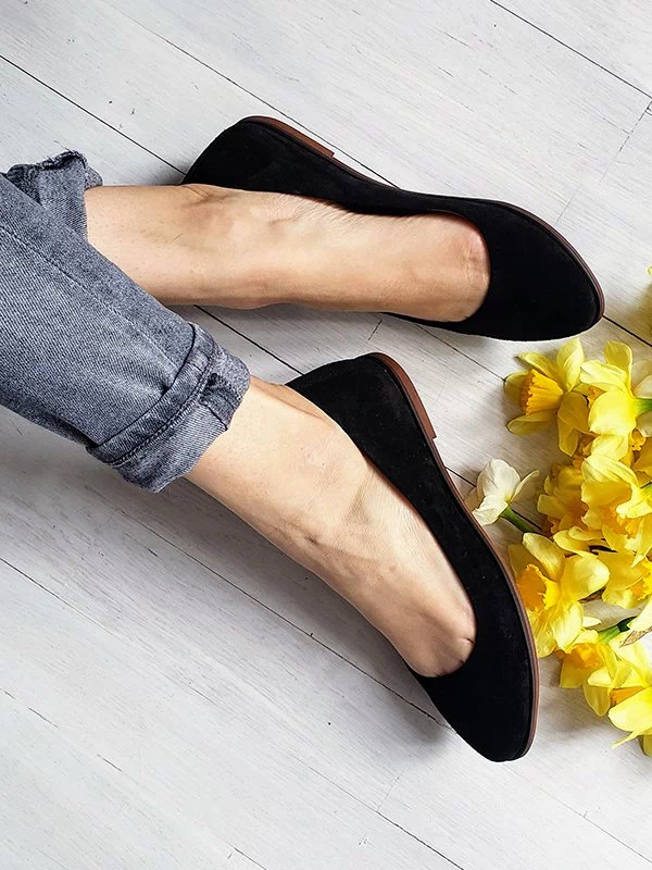 Будьте первым, кто оставил отзыв на «Черные замшевые балетки с небольшим каблуком»