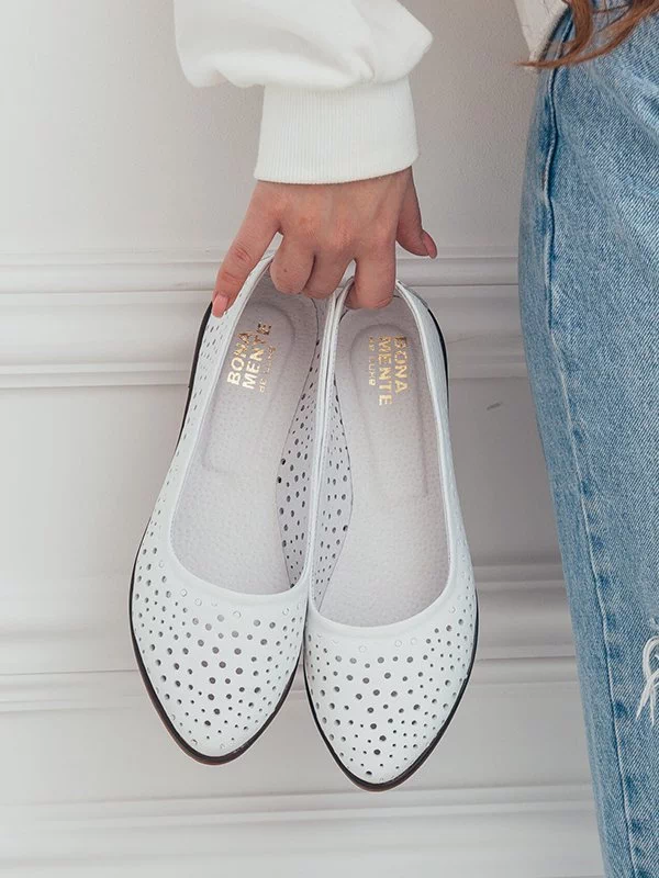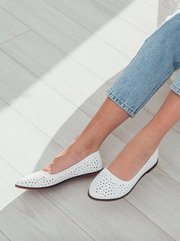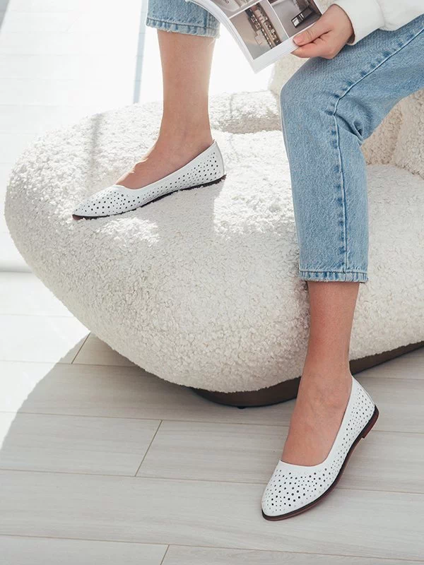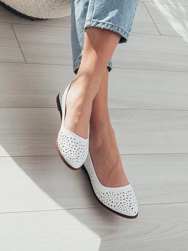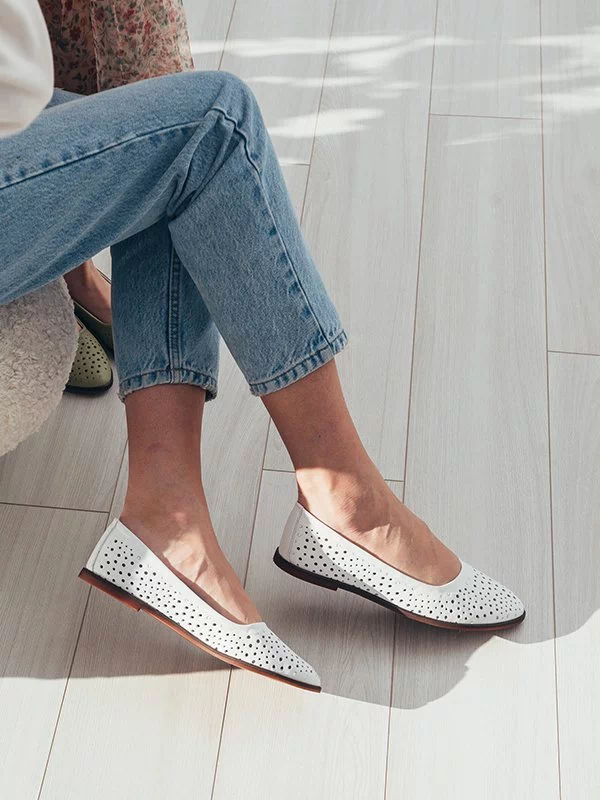 Кожаные летние балетки белого цвета с перфорацией «в горошек»