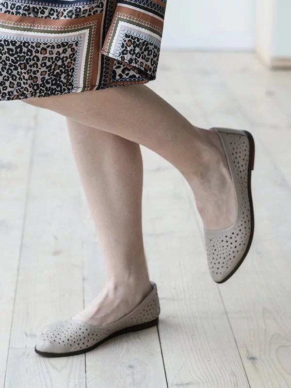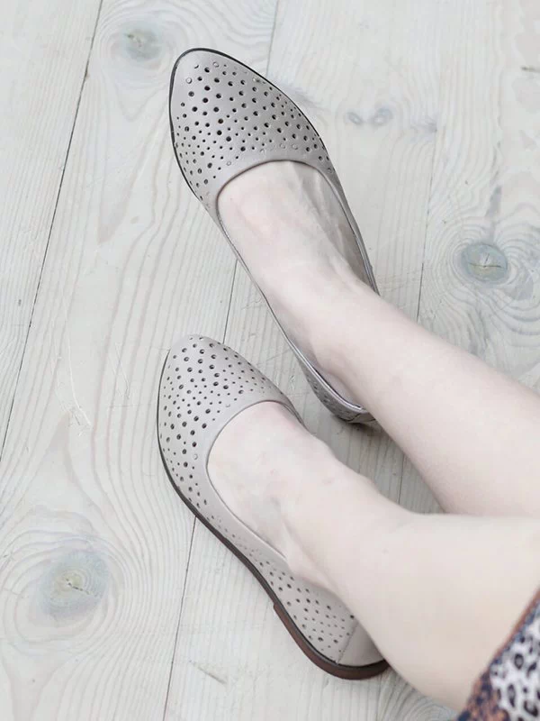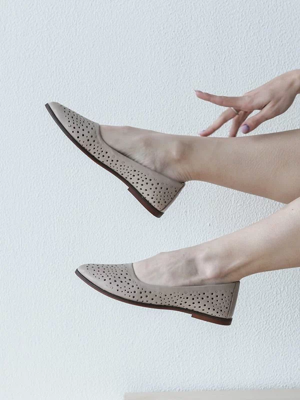 Бежевые кожаные летние балетки с перфорацией «в горошек»