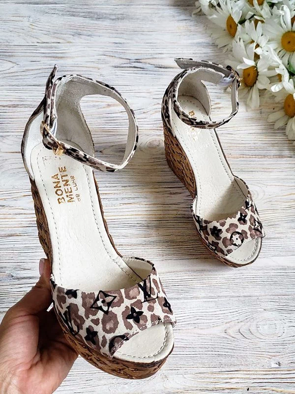 Замшевые босоножки с тёмно-леопардовым принтом