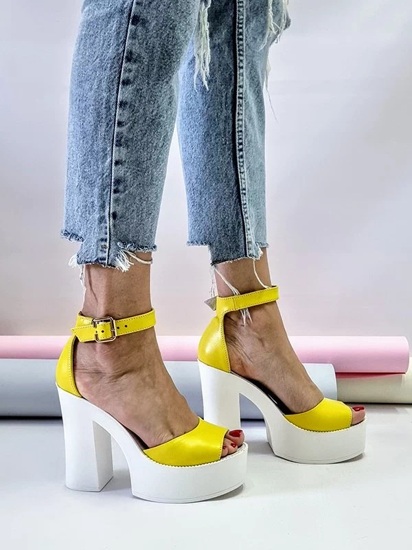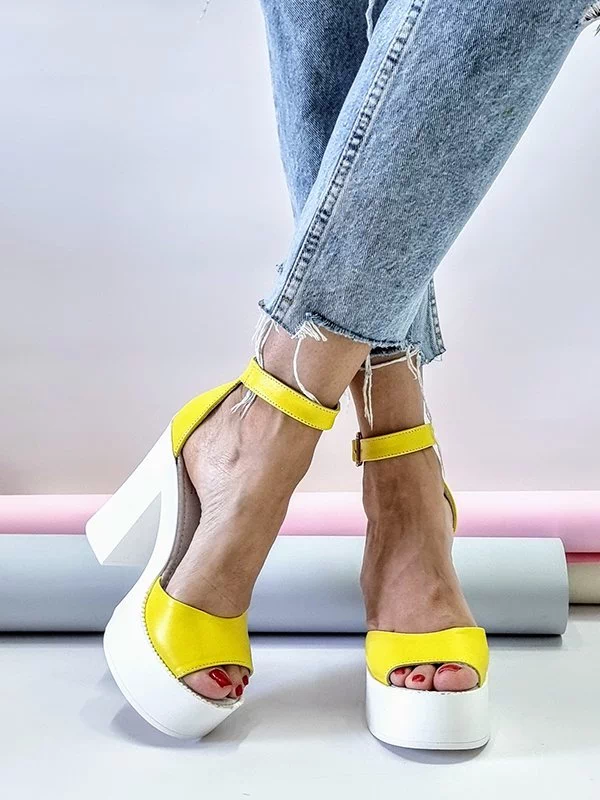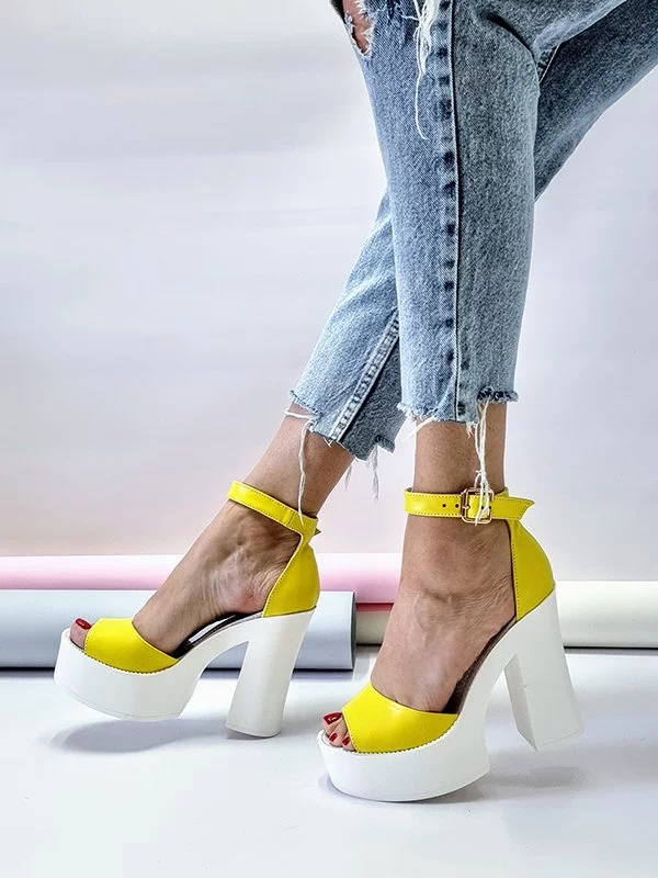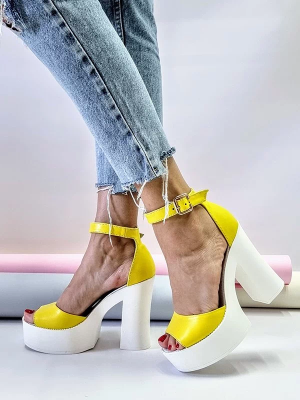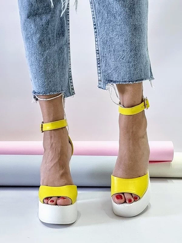 Жёлтые кожаные босоножки на платформе с каблуком