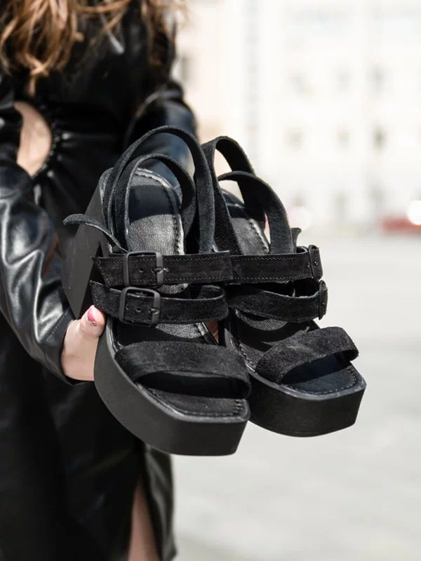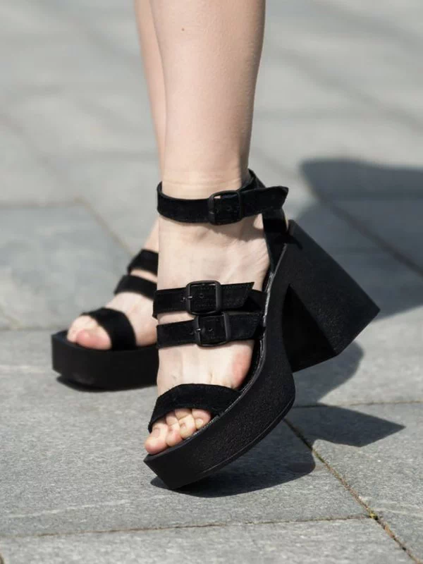 Кожаные черные босоножки на платформе с каблуком