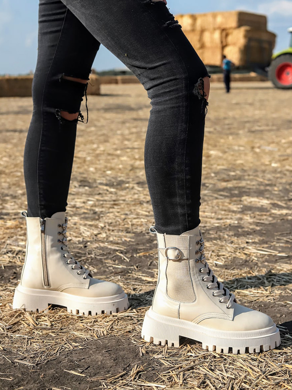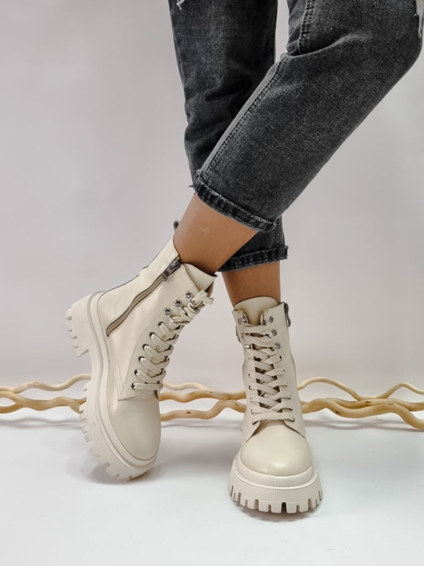 Привлекательные осенние женские ботинки в бежевом исполнении на все случаи жизни.