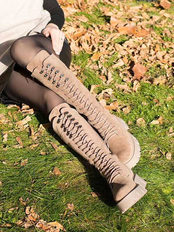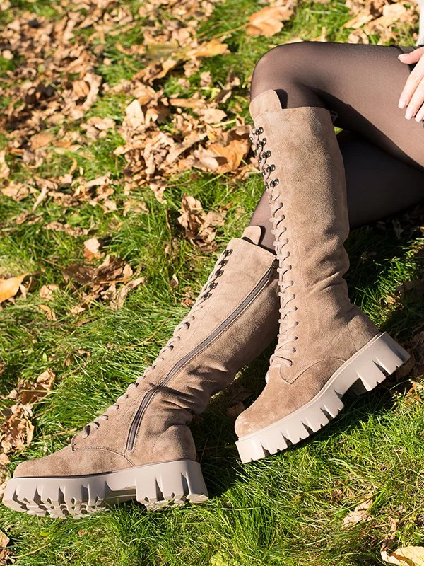 Будьте первым, кто оставил отзыв на «Бежевые высокие замшевые осенние ботинки на байке»