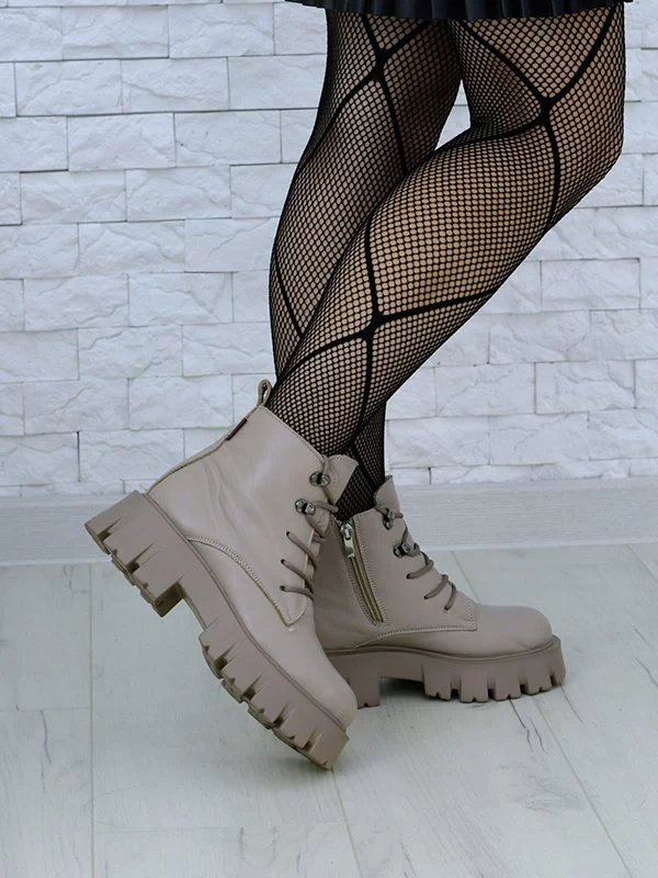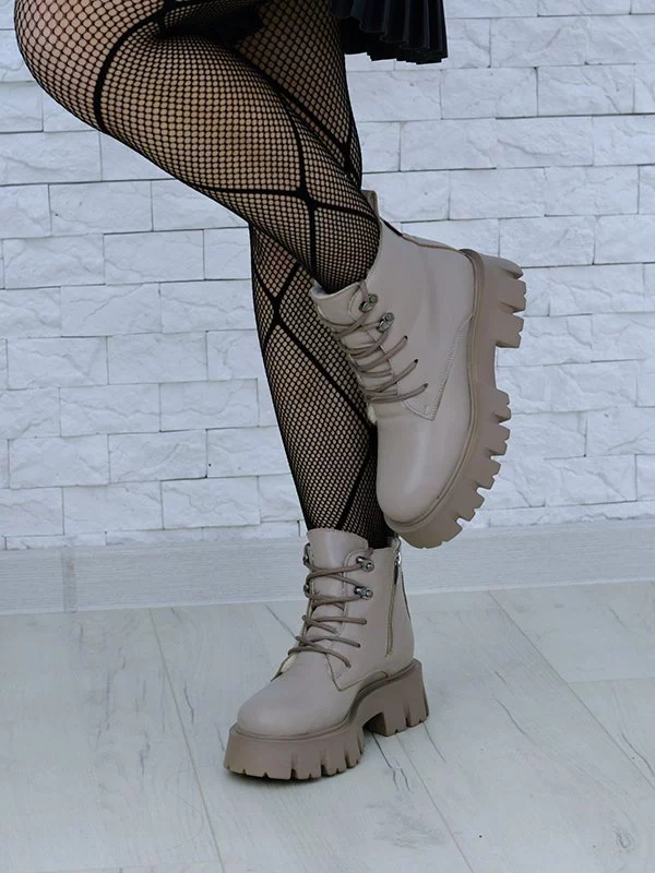 Кожаные зимние ботинки в темно-бежевом исполнении