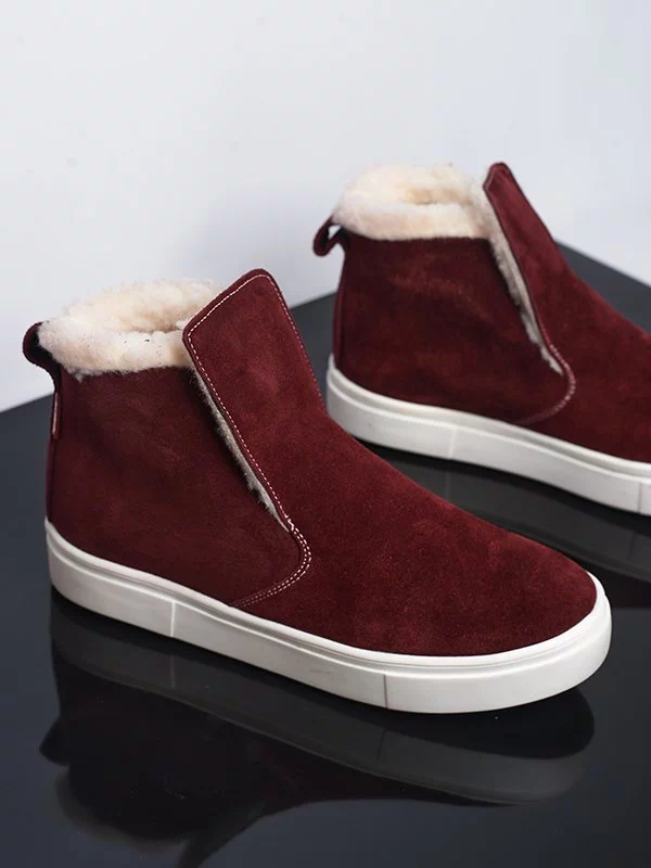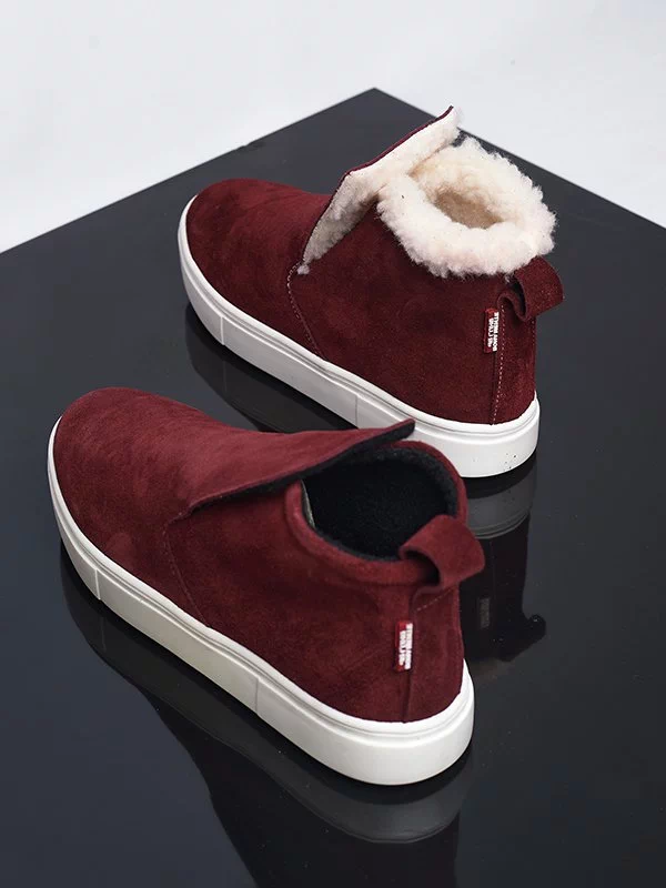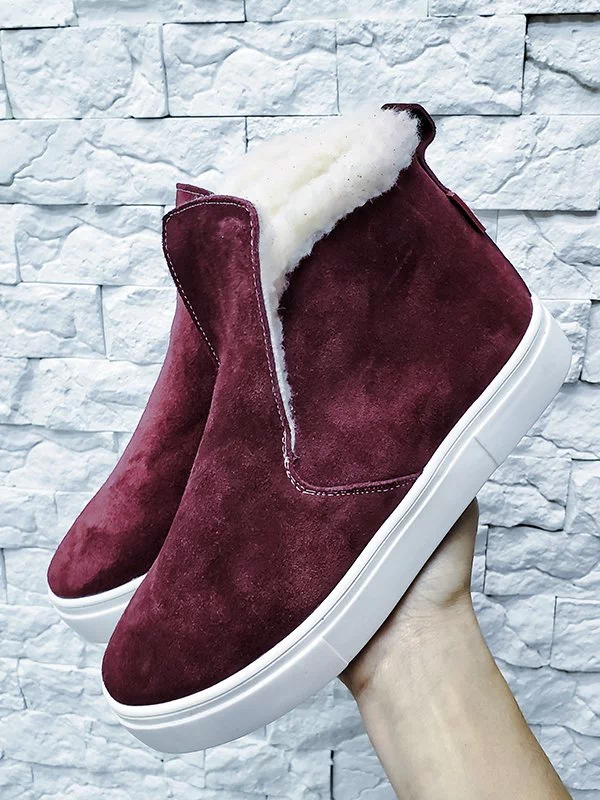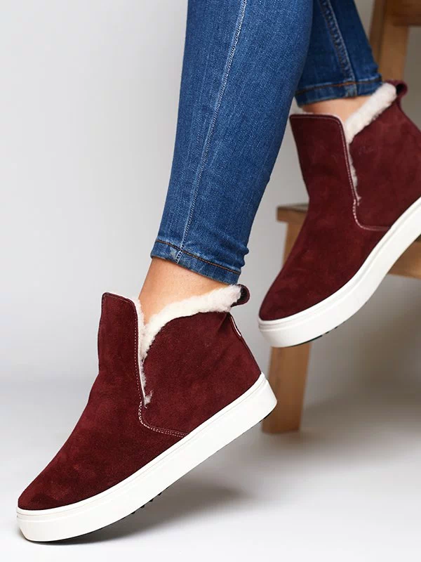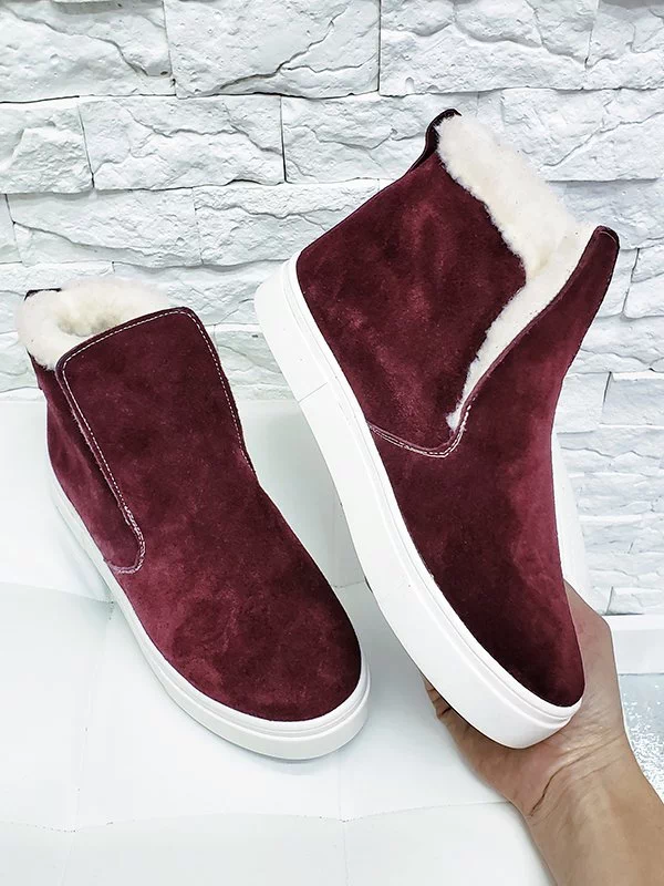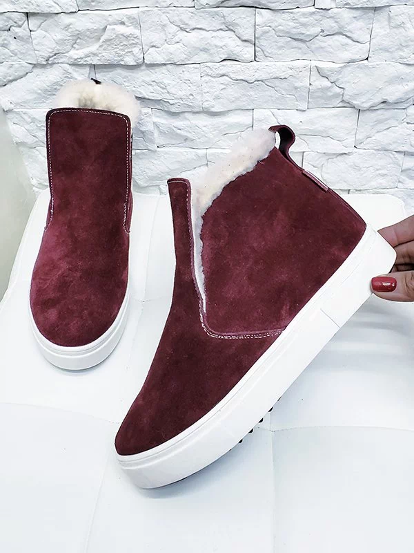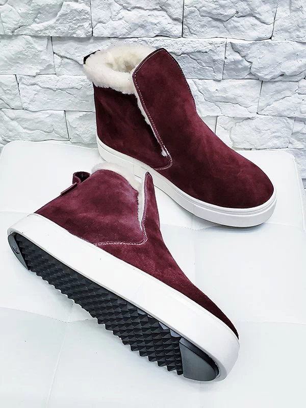 Замшевые зимние хайтопы в бордовом исполнении