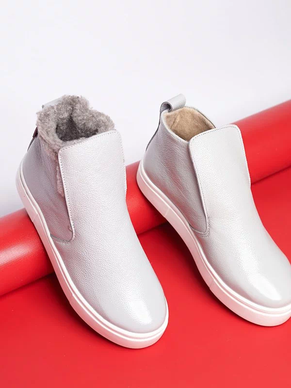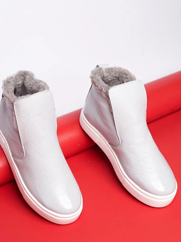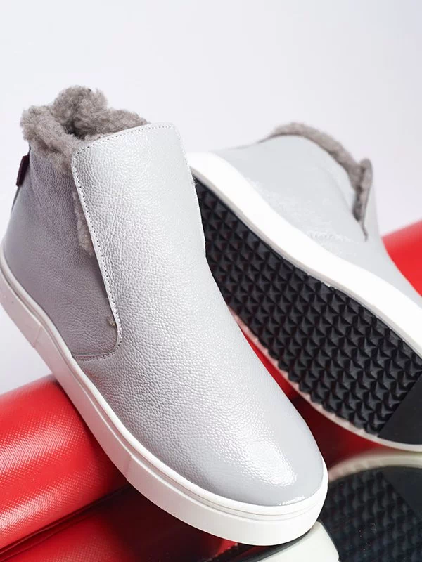 Зимние хайтопы в сером исполнении из лаковой кожи