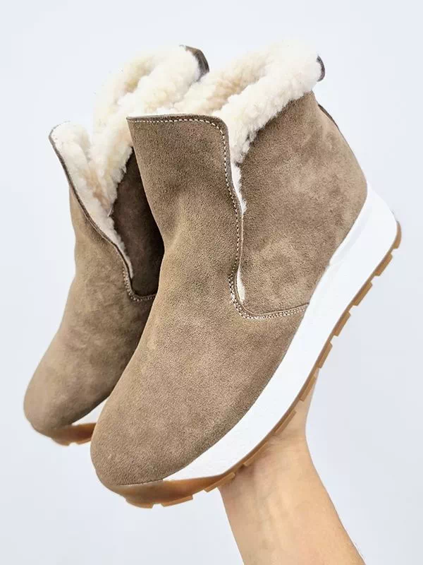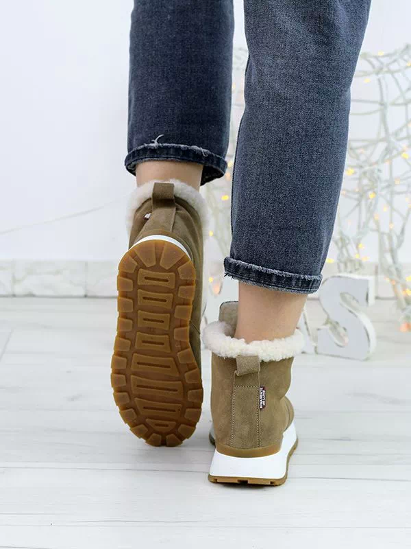 Зимние хайтопы из натуральной замши темно-бежевого оттенка