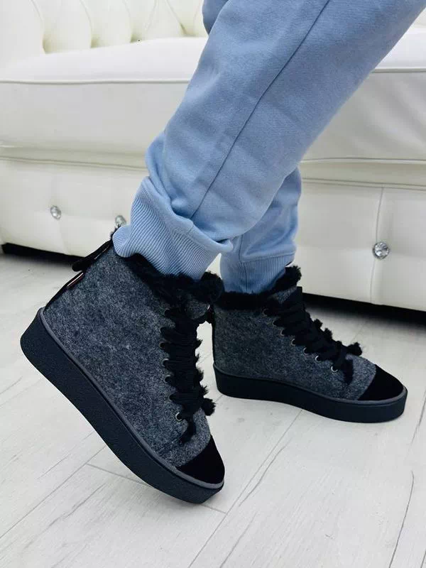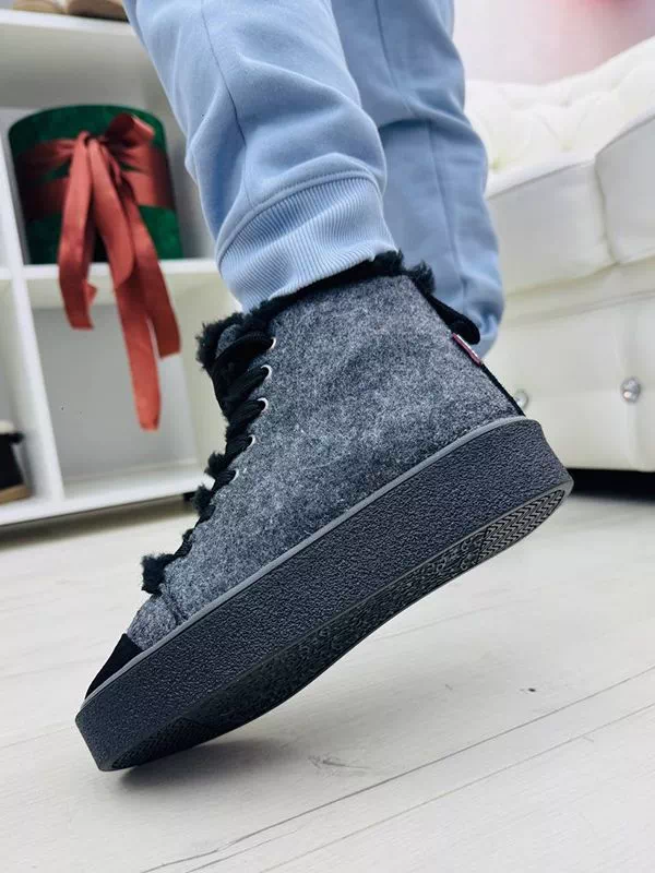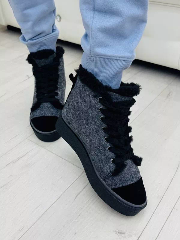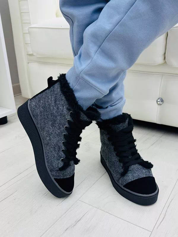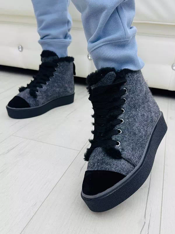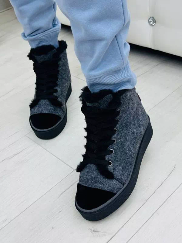 Серо-белые зимние кеды из валяной шерсти и кожаных вставок