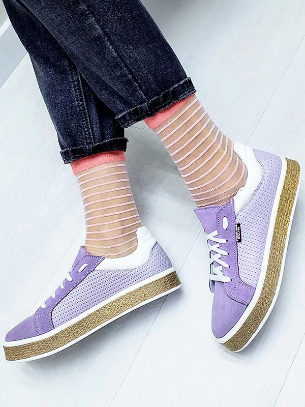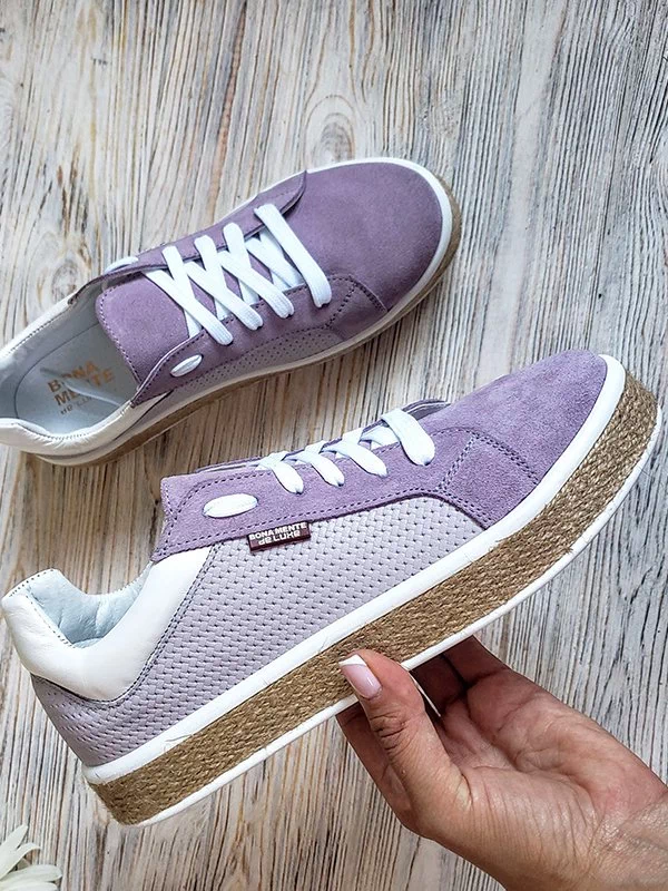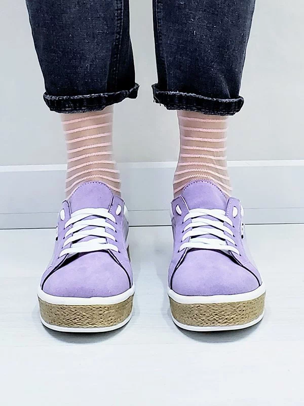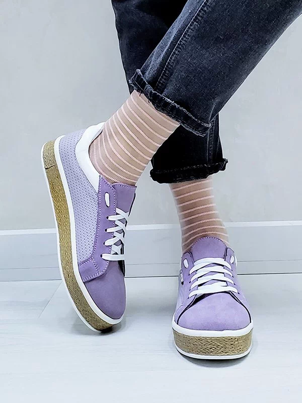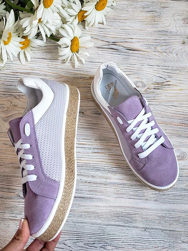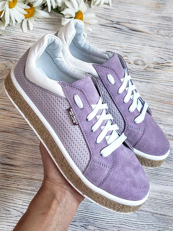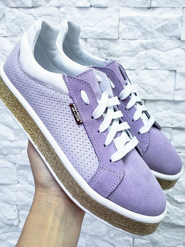 Фиолетовые кеды из кожи и замши на джутовой подошве