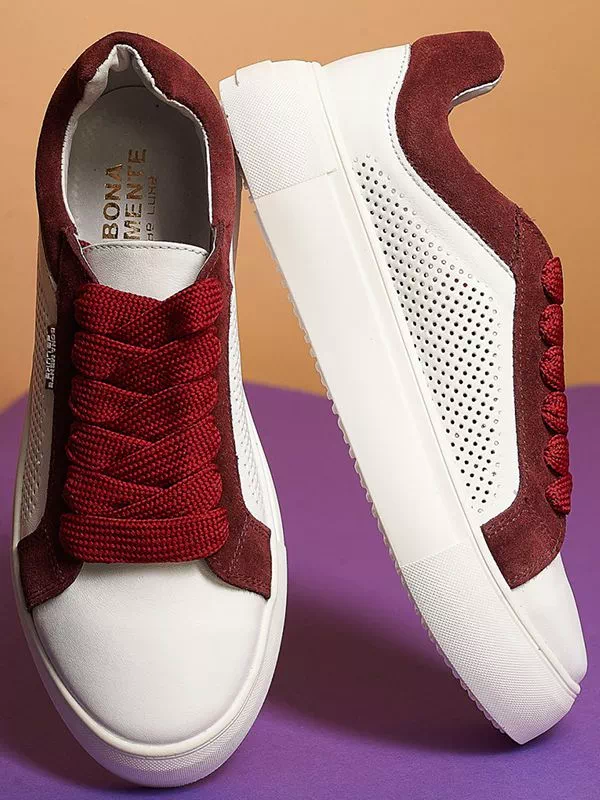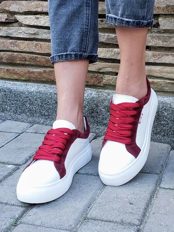 Шикарные женские кеды белого цвета с бордовыми вставками на любые случаи жизни.