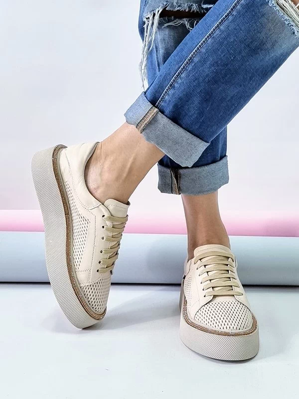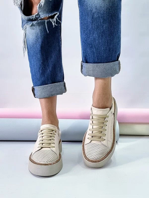 Великолепные летние женские кеды в бежевом исполнении на все случаи жизни.