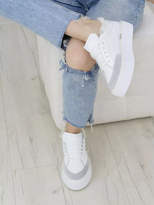 Зимние кеды из натуральной кожи и замши белого цвета