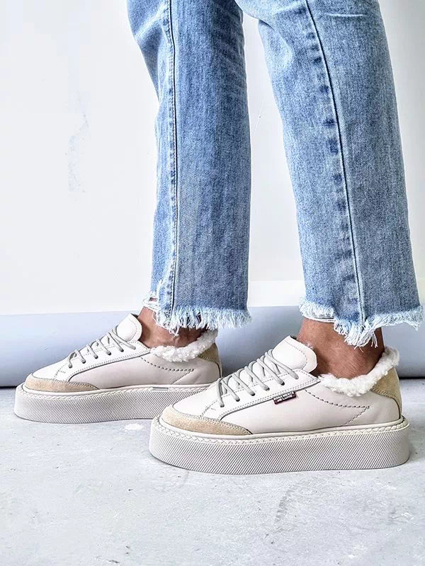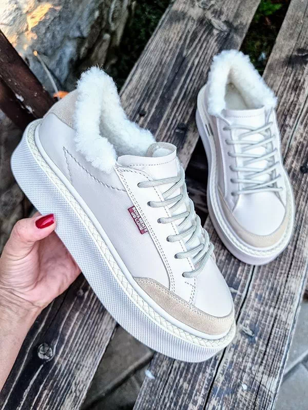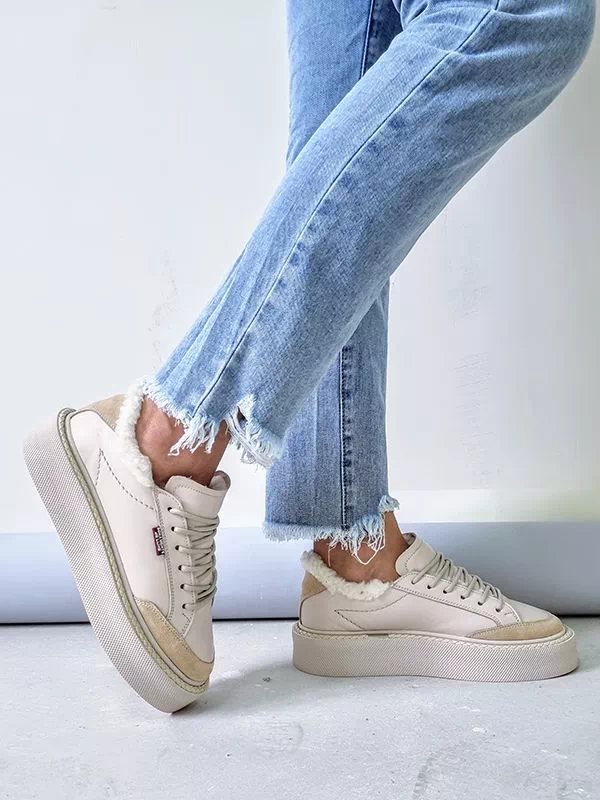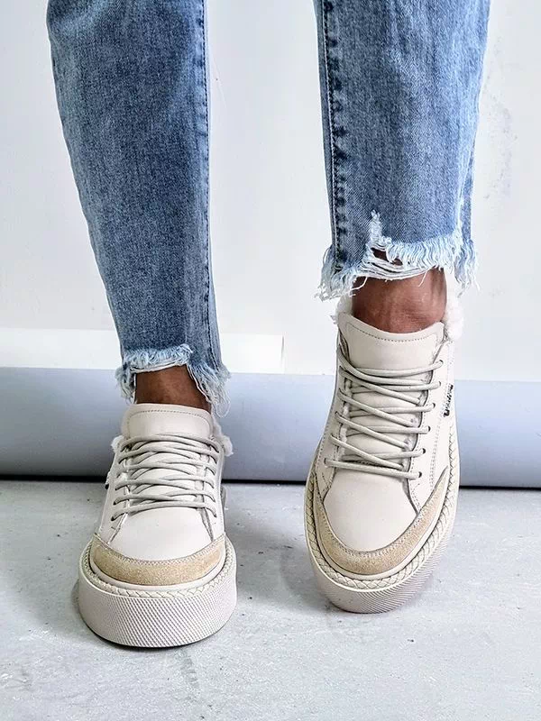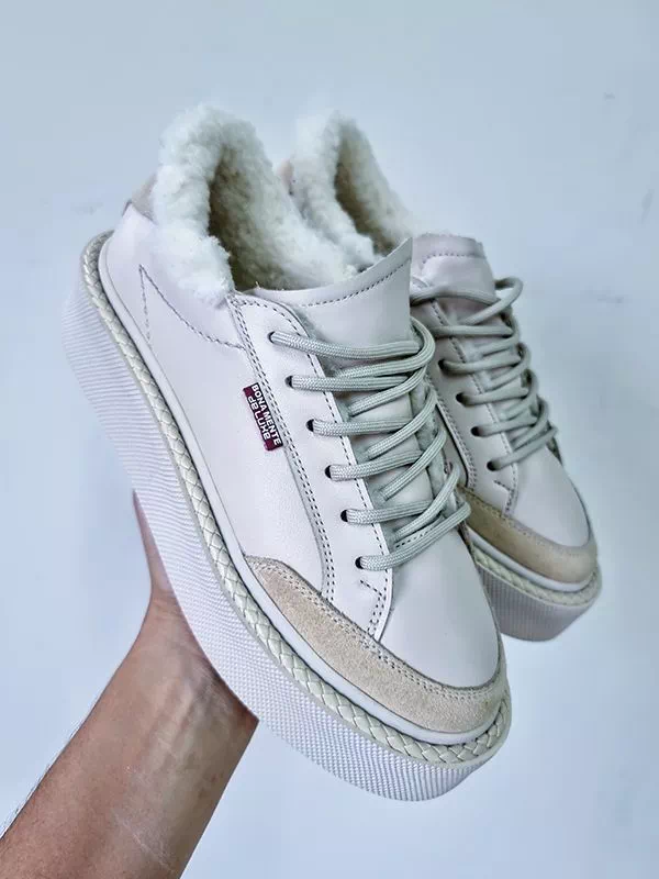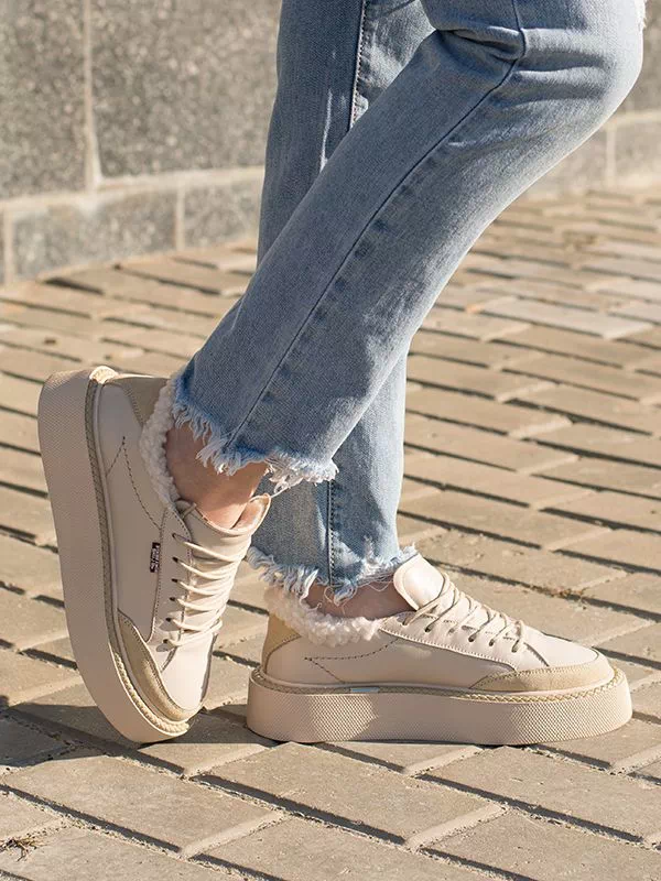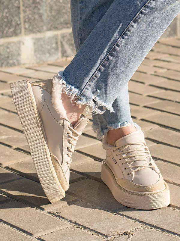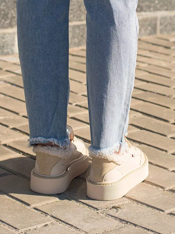 Превосходные зимние женские кеды в светло-бежевом исполнении на все случаи жизни.