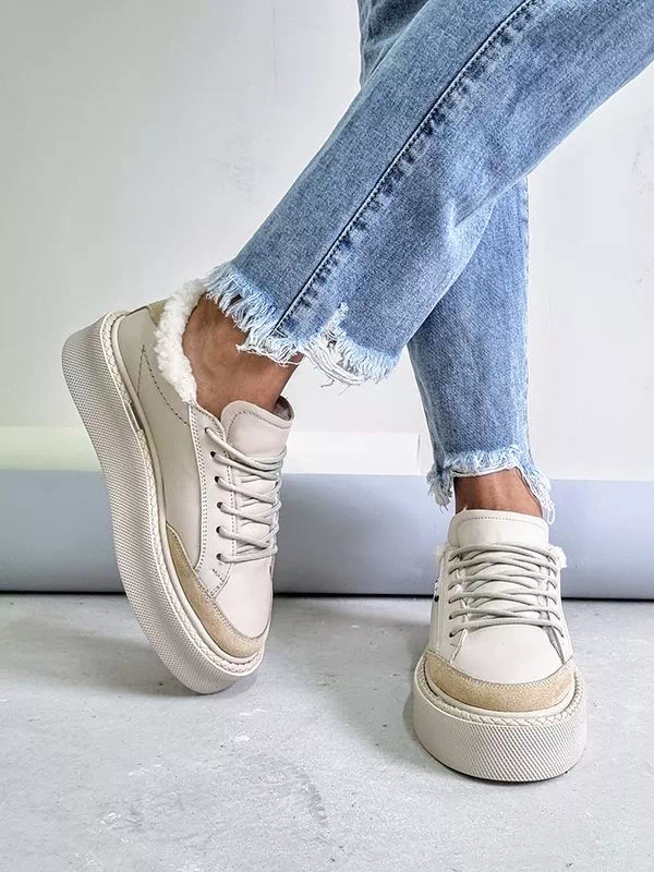 Зимние кеды светло-бежевого цвета из натуральной кожи и замши