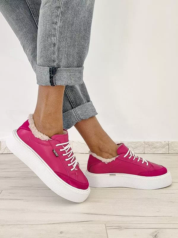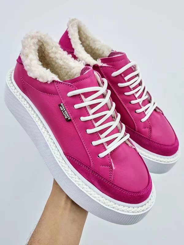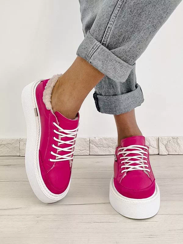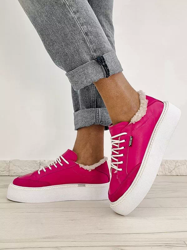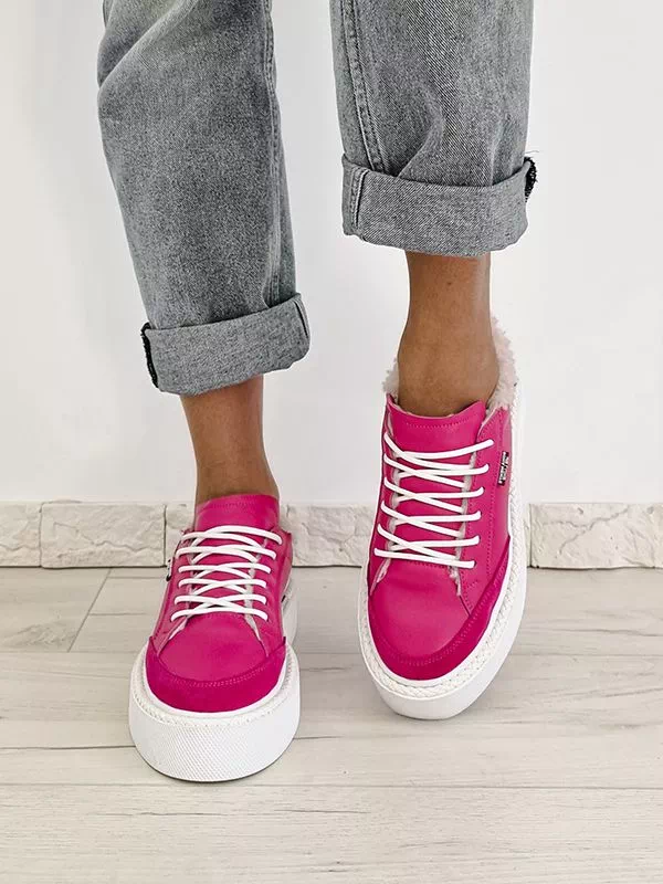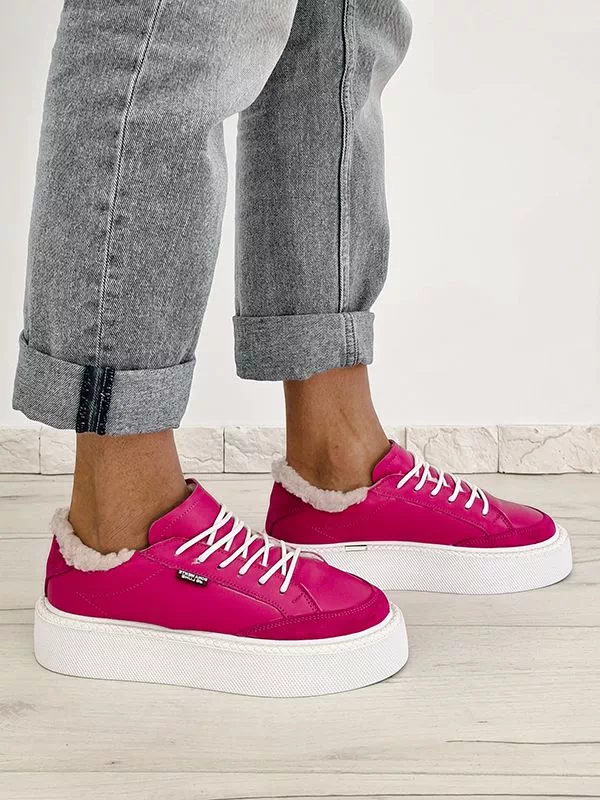 Элегантные зимние женские кеды малинового оттенка (фуксия) на любые случаи жизни.