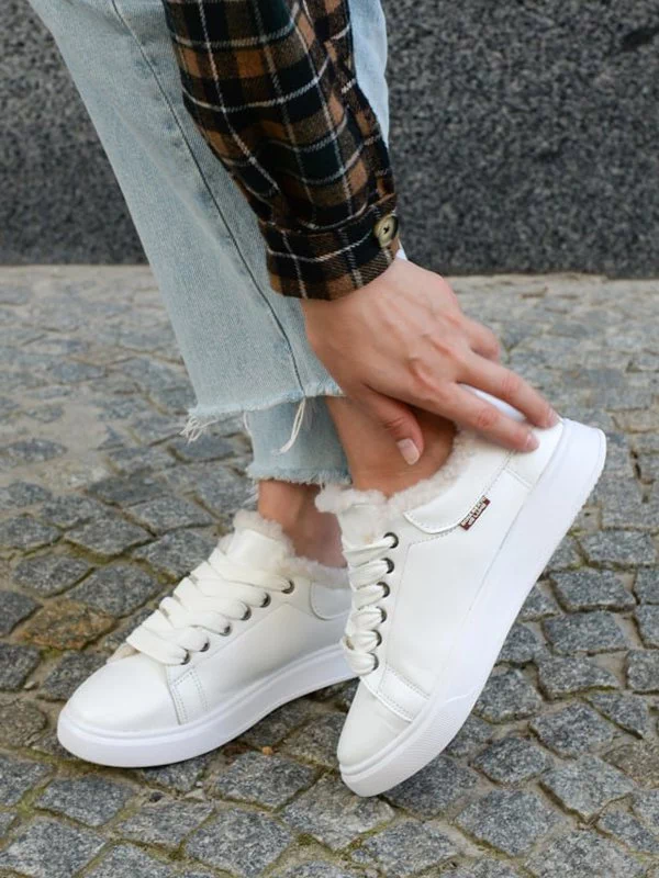 Трендовые белые зимние женские кеды с утеплителем внутри на любые случаи жизни.
