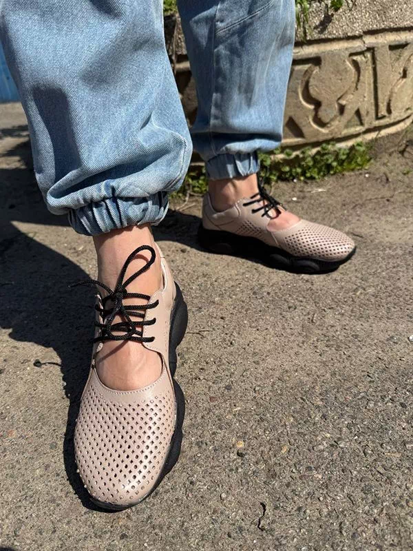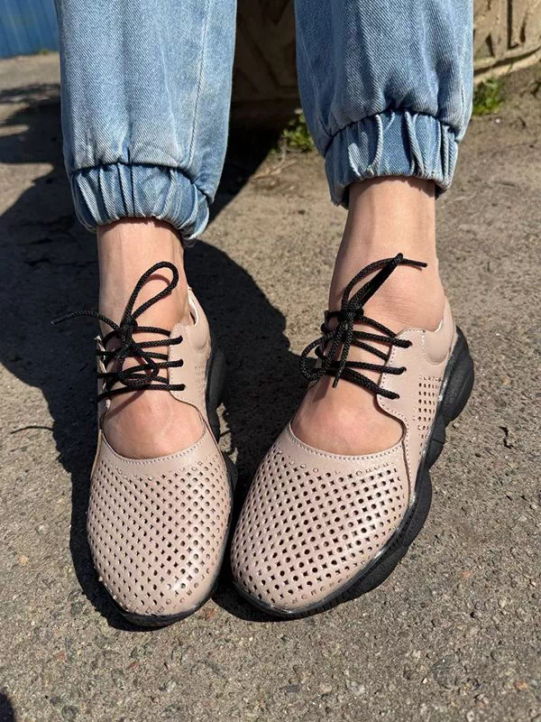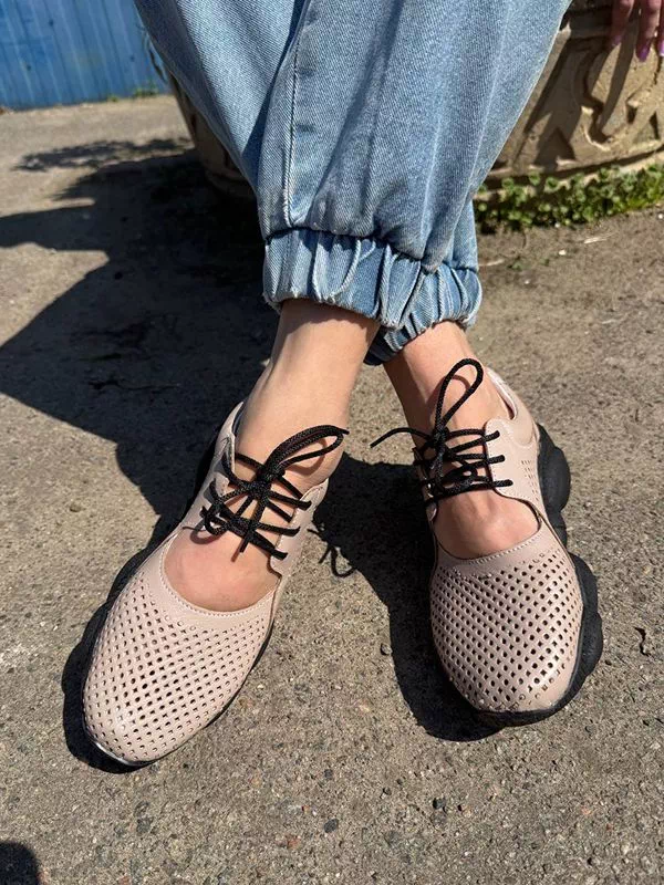 Привлекательные летние женские кроссовки кремового цвета на любые случаи жизни.