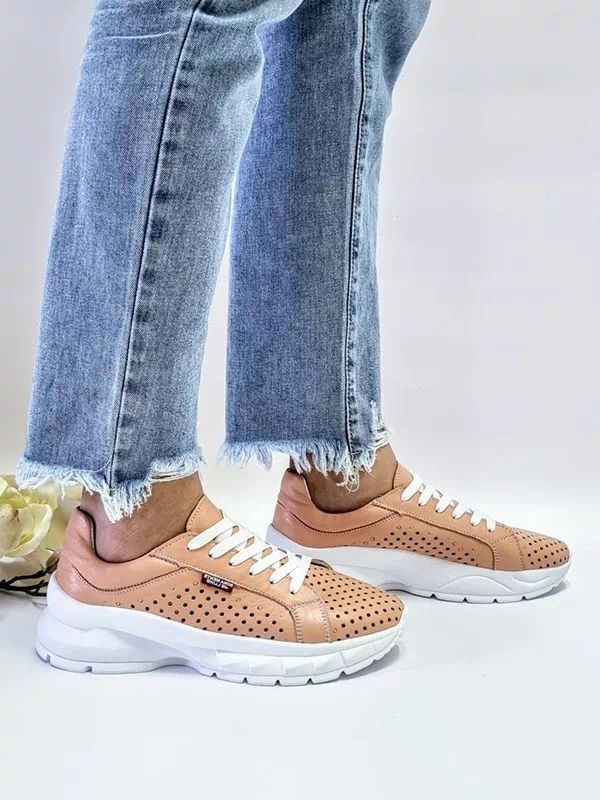 Интересные летние женские кроссовки в персиковом исполнении на все случаи жизни.