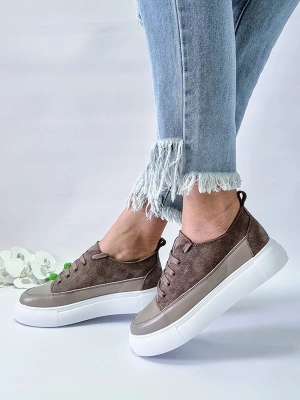 Будьте первым, кто оставил отзыв на «Коричнево-бежевые кроссовки из натуральной замши и кожи»
