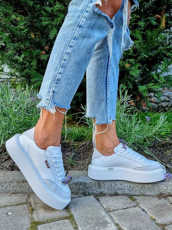 Великолепные женские кроссовки серо-белого цвета на любые случаи жизни.